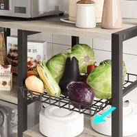 With its rustic grey finish, multipurpose design, and easy assembly, this bakers rack combines aesthetics with practicality. The reinforced structure ensures stability, making it suitable for various kitchen and living room applications.