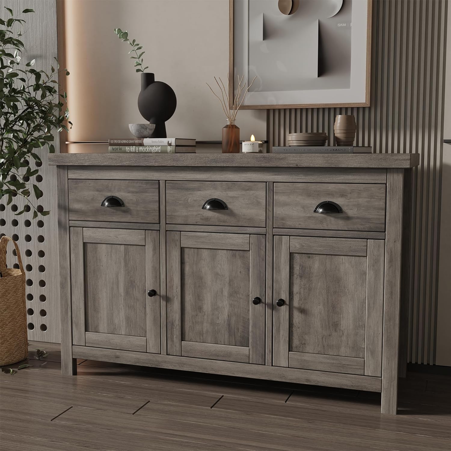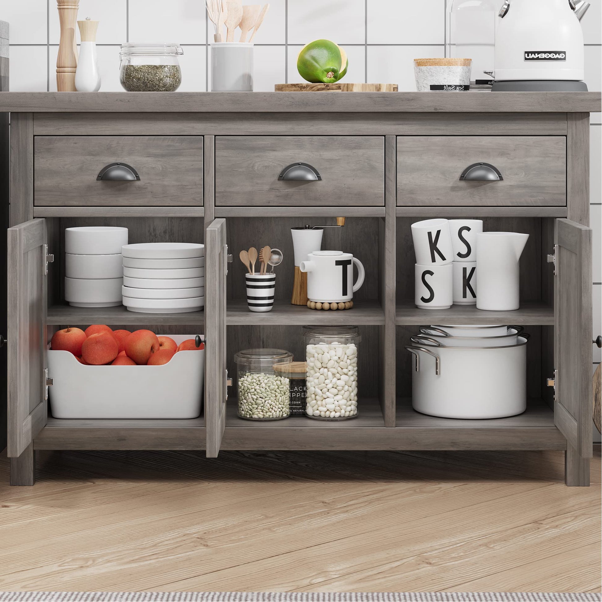 Transform your space with our multi-functional kitchen cabinet sideboard. Designed for versatility and style, it's the perfect addition to any room, offering ample storage and a touch of farmhouse charm.