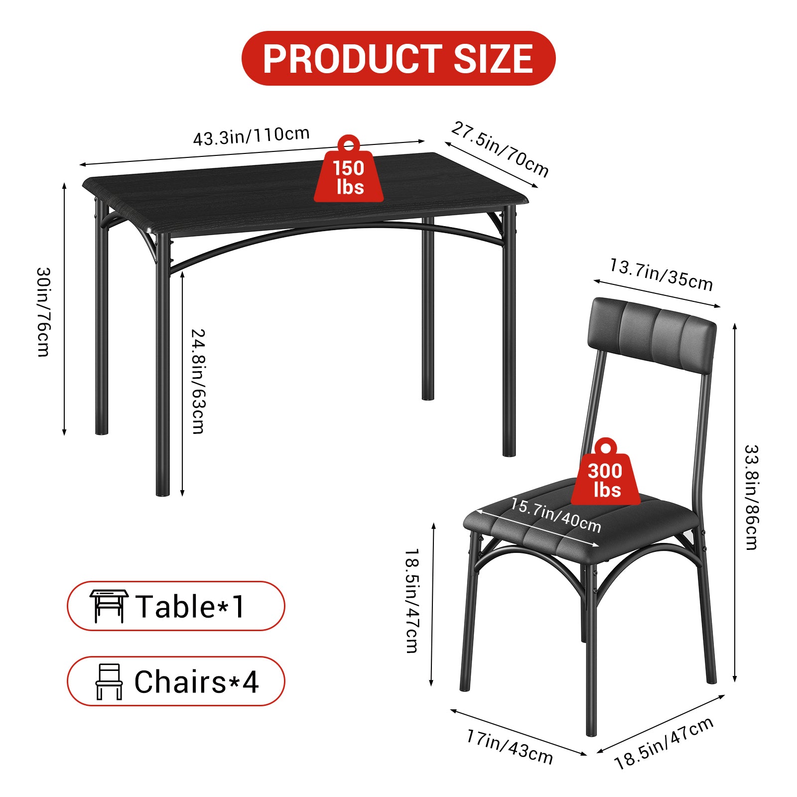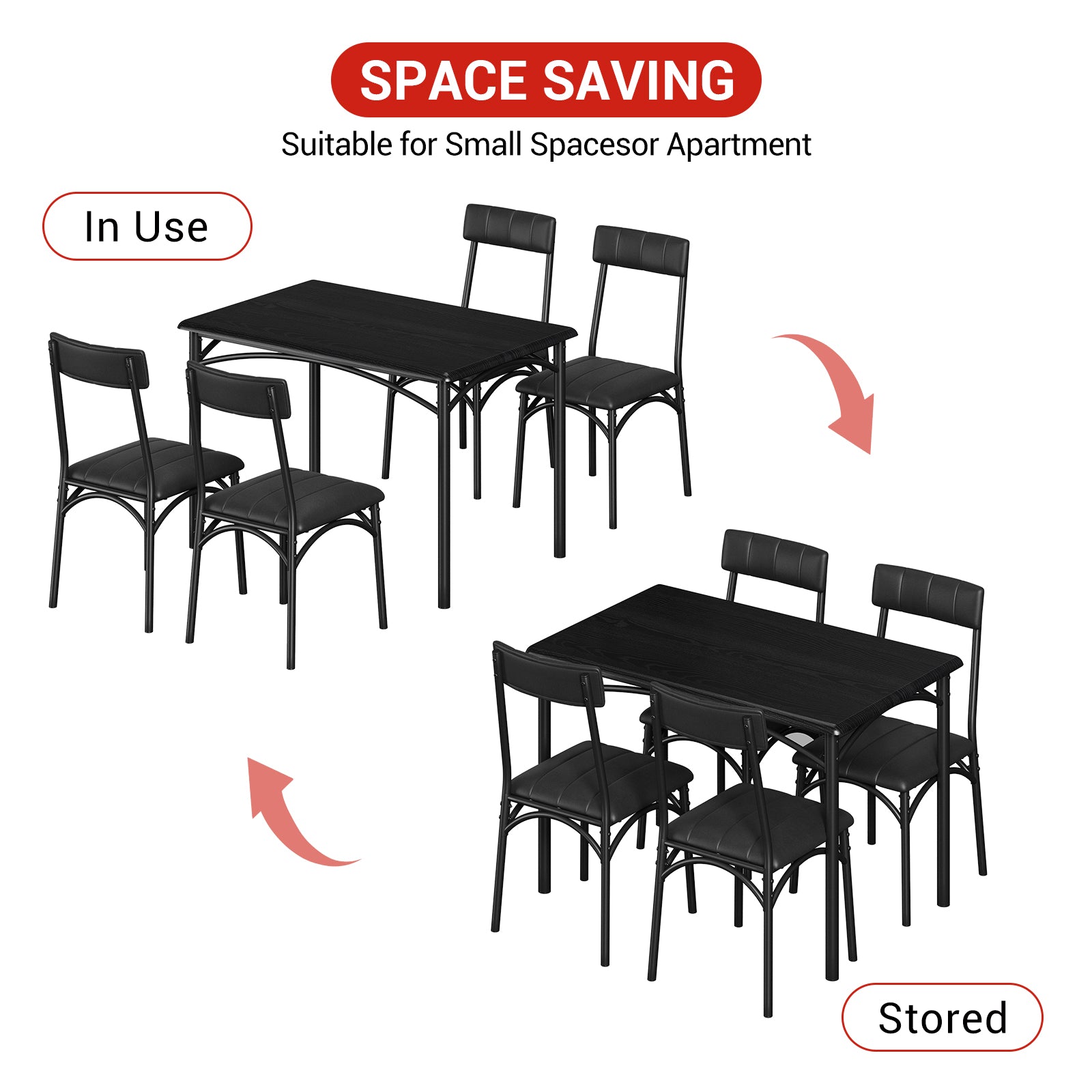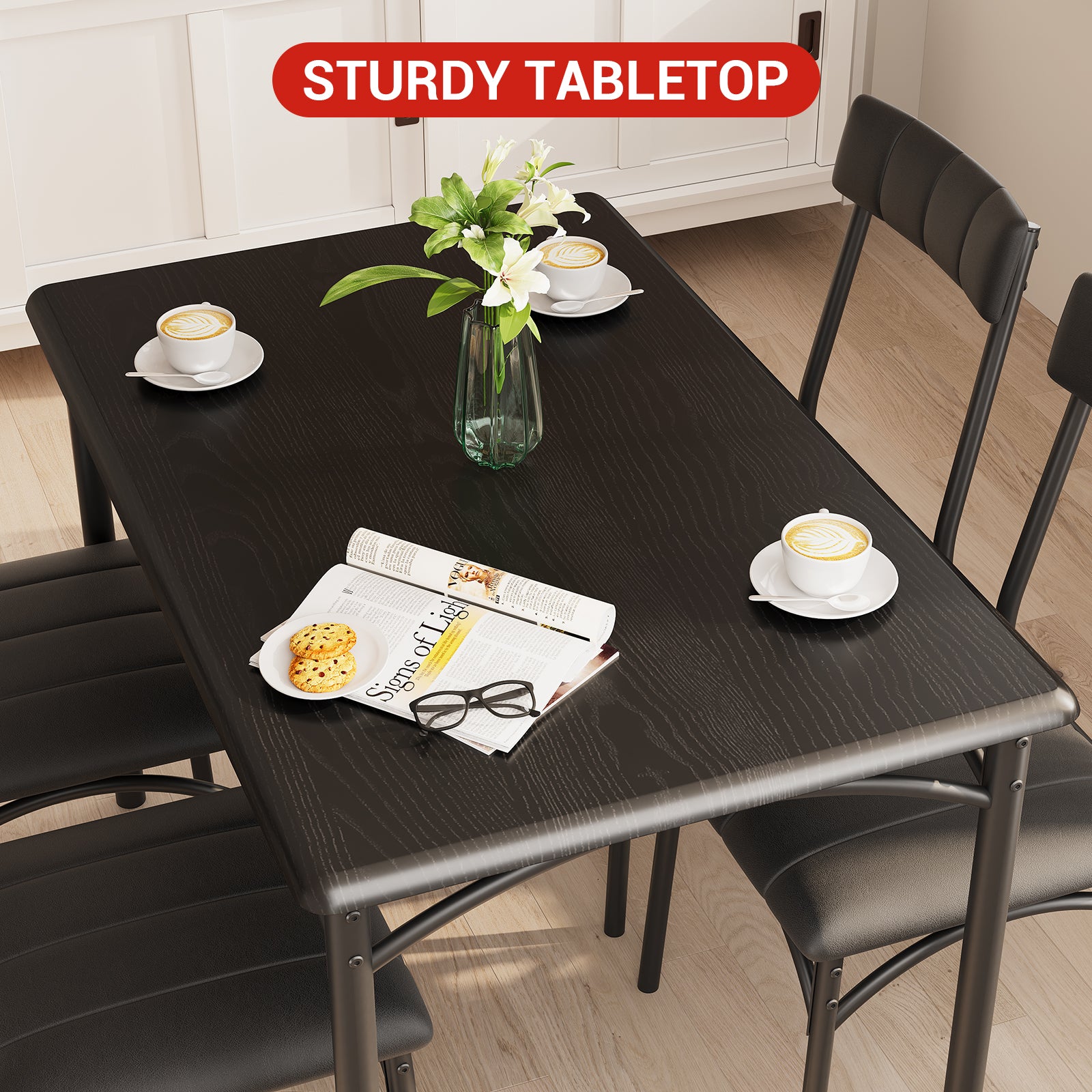 Garvee Dining Table Set for 4, Kitchen Table with 4 Upholstered Chairs, Wood Rectangular Dining Table and Chairs Set, for Small Space, Apartment, Dinner, Black