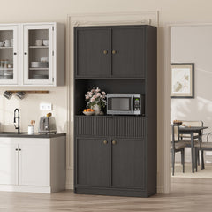 Garvee 70" Kitchen Pantry Cabinet in Grille Design with Doors and Drawer, Black