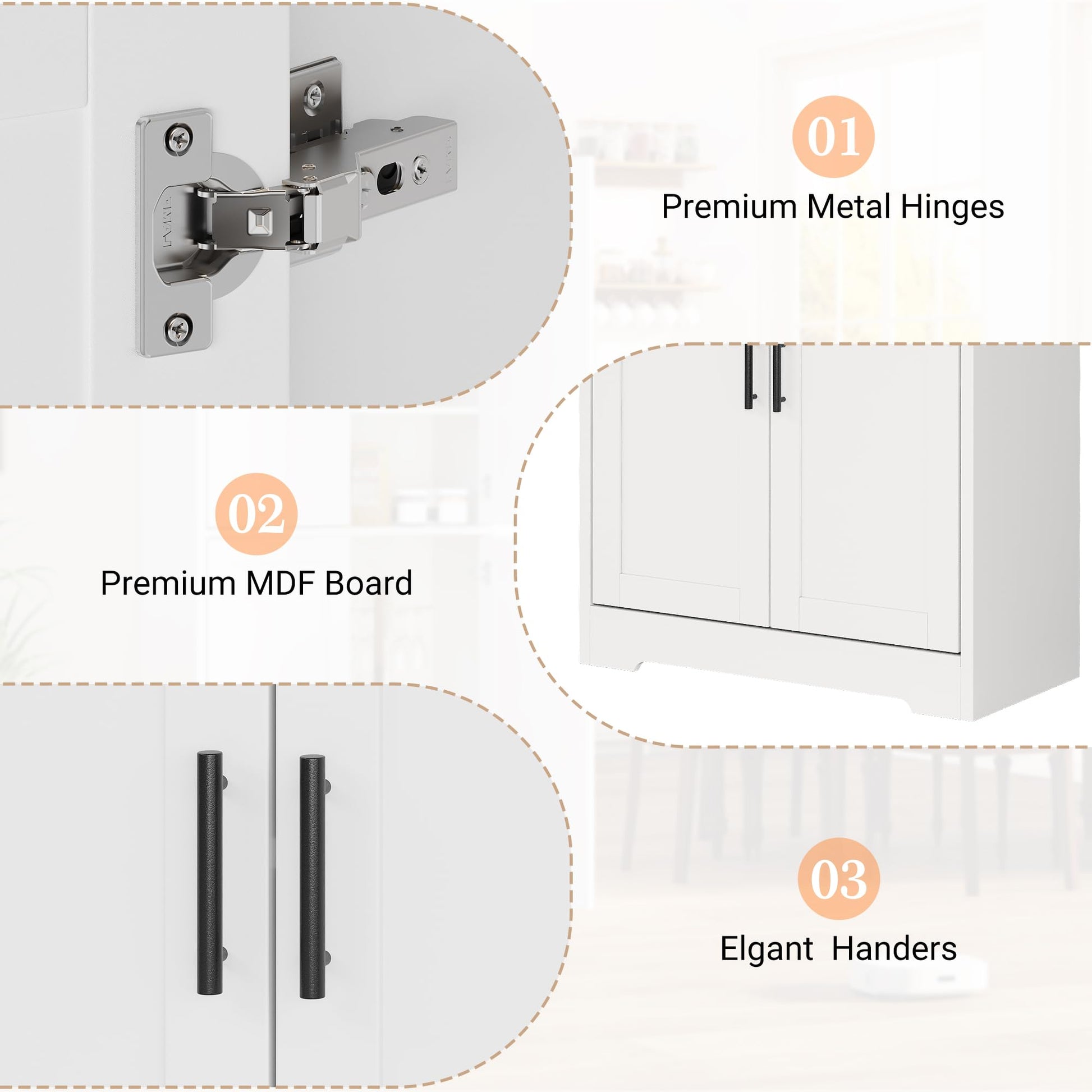 - Optimize Your Storage Experience: Enjoy well-designed storage that offers lasting functionality. The kitchen cupboard height is tailored for the average adult's comfort. Oversized coated metal handles provide a comfortable grip and ensure durability. High-quality hinges allow for smooth door operation, perfectly blending style and practicality for a seamless storage experience