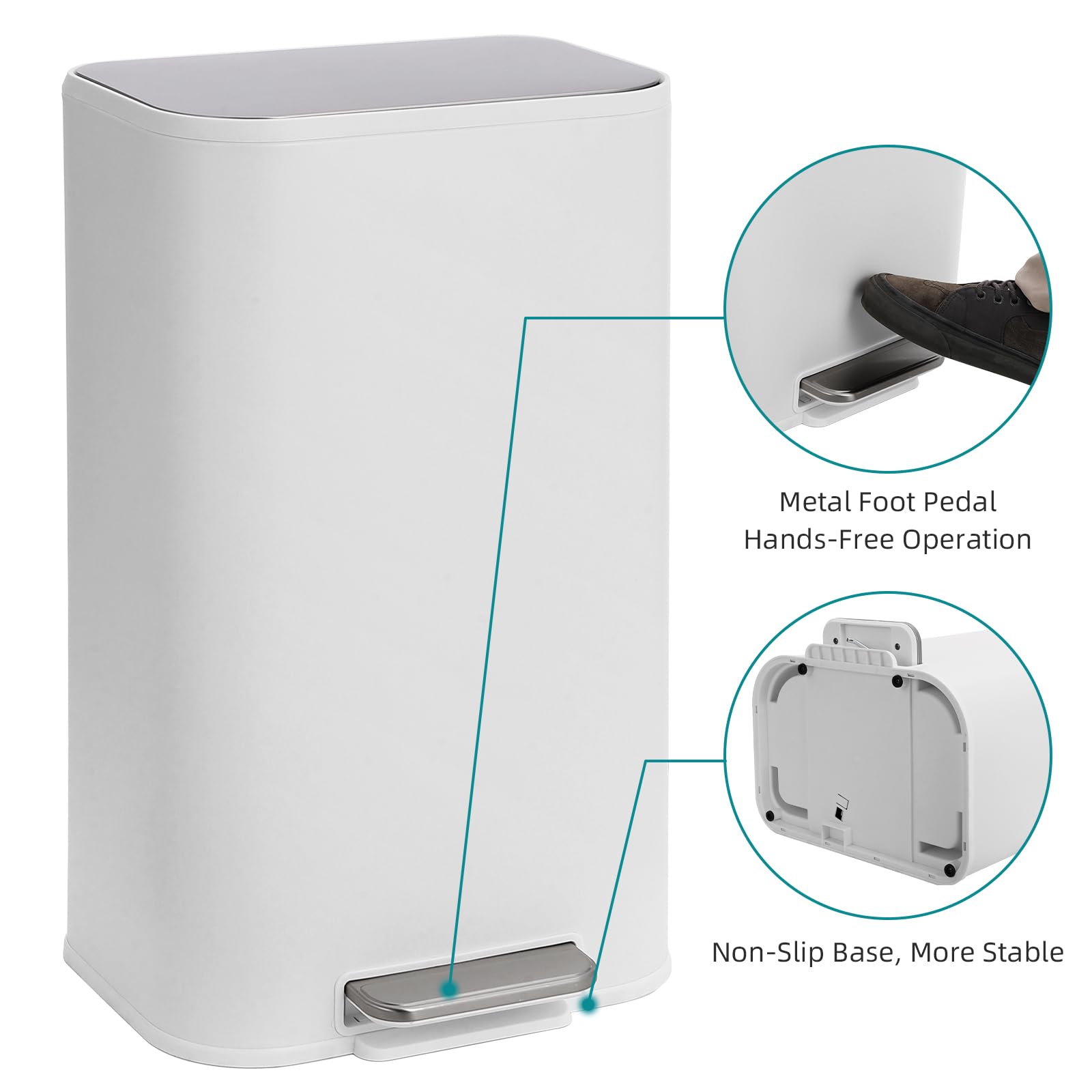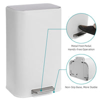 Garvee Kitchen Trash Can, 30L/8 Gallon Stainless Steel Garbage Can with Soft Close Lid Foot Pedal & Removable Inner Bucket, Rectangular Step On Waste Bin for Home Office Living Room, White