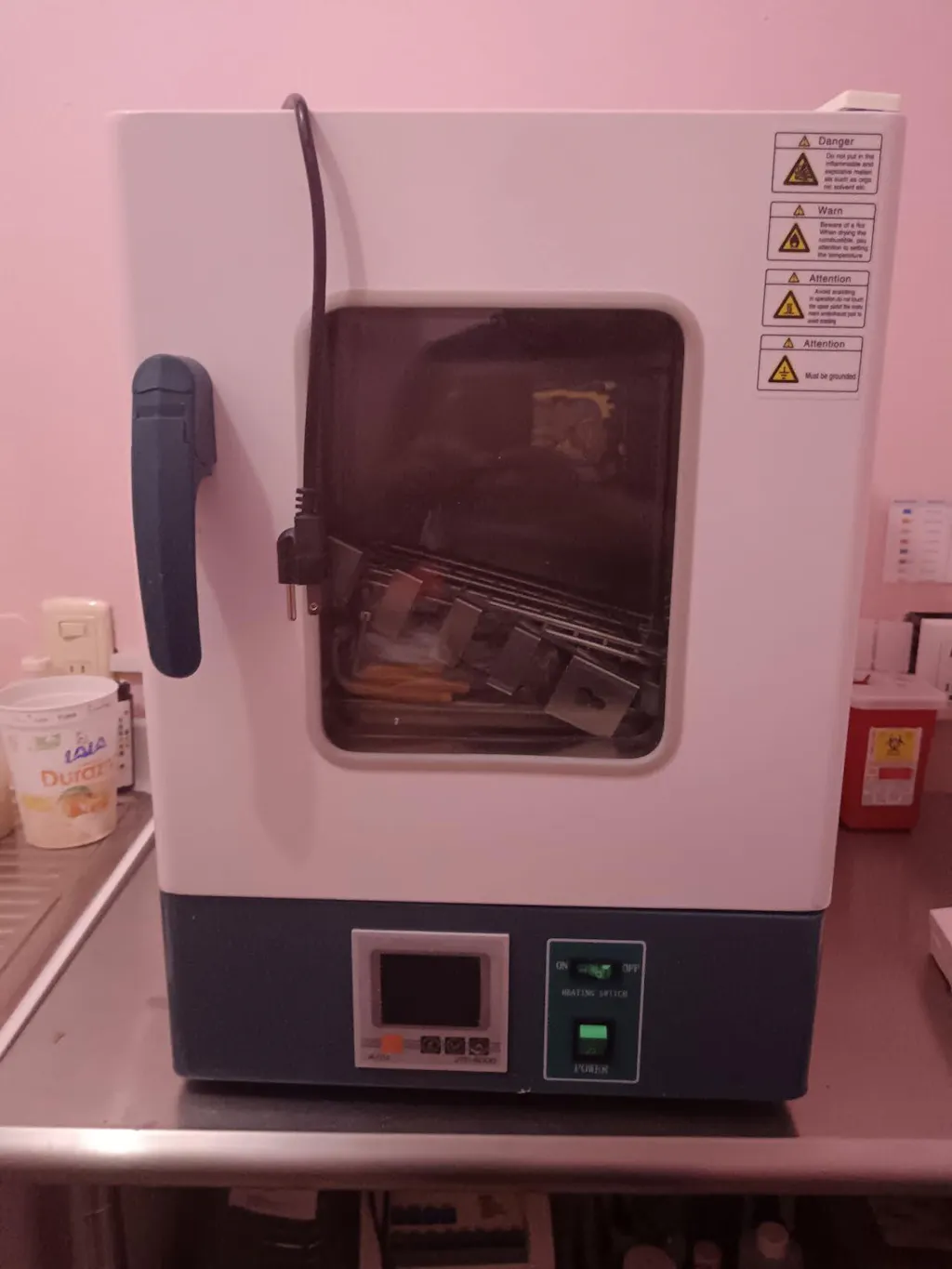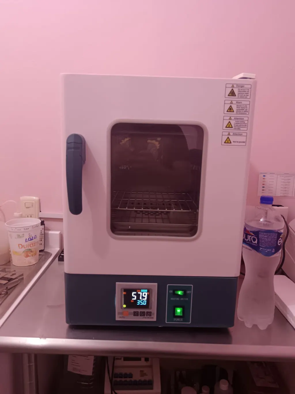 The incubator is a simulated thermal convection incubator with an ambient temperature of 0 to 65 degrees Celsius, with a fixed and an adjustable shelf, it has a transparent window to ensure safety and temperature consistency. The incubator is designed to heat cultures, test kits, and other biological samples in clinical, industrial, and academic environments.