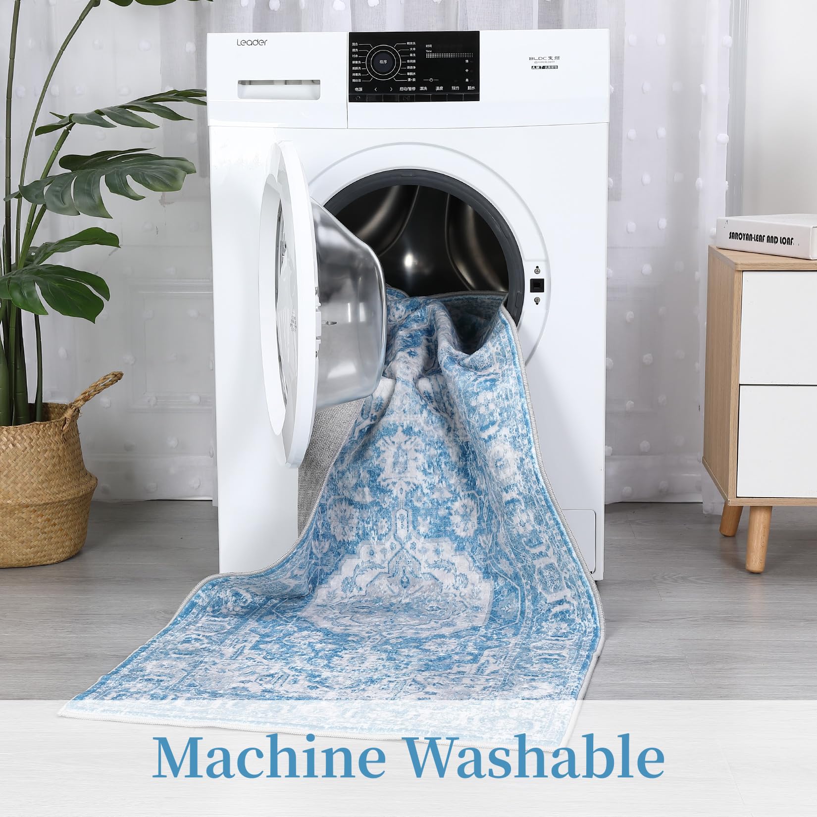 Garvee Large 9x12 Washable Vintage Rug - Oriental Distressed Design, Non-Slip, Low Pile Polyester, Stain & Water Resistant, Ideal for Living Room, Bedroom