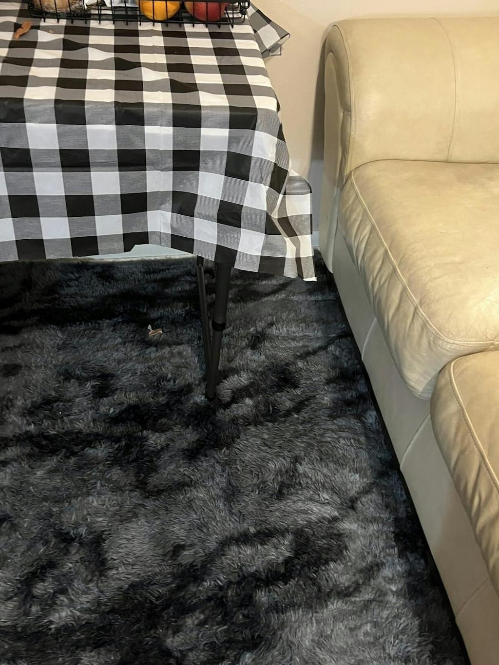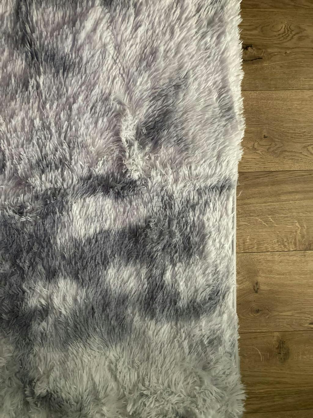 this is a review for the GARVEE Fluffy Area Rug- Shag Area Rug for Living Room, Shaggy Large Indoor Thick Living Room Carpet with Non-Slip Backing, Soft Plush Carpet for Bedroom,5x8,Tie-dye Light Greypros: I got this to replace a washable rug that I’ve had for several years and is starting to show its wear (different seller); I have had that rug three years plus and probably washed it at least every month or two in that time period). I can’t say enough good things about washable rugs — if you have pets or kids or just are grossed out sometimes by dirt and want your place to smell fresh this is the BEST. Compared to my previous rug (which had a flat nap) this is bigger, shaggier, a bit thicker, softer, AND priced better. It's very soft and my dog loves it. The pattern is nice, subtle. It didn’t smell weird on arrival and actually had no creases or wrinkles from the get go. I’ve not washed it yet but it balls up into a size that looks like it will fit fine in a front load HE washer.Cons: Although thicker/shaggier/plushier than my previous washable rug it’s still thin -- which of course is what you want in a rug if you want to be able to wash it. Although it will set you back another $40 or so, I highly recommend a carpet pad under it, which you can buy on here as well. Mine is 1/4 inch thick, came from a company called Mohawk -- and it makes all the difference in the world to keep things washable rugs in place and to make them feel nicer underfoot. The other con for this particular rug is that my partner reaaaallly did not love the look of this one in our living room -- it does look a bit cheap and more appropriate for a kid's room, a rec room, dorm room, etc. If you want a luxe, grown up looking rug this one isn't quite it. I ended up pulling this one up from the living room and will use it for a kid's room.