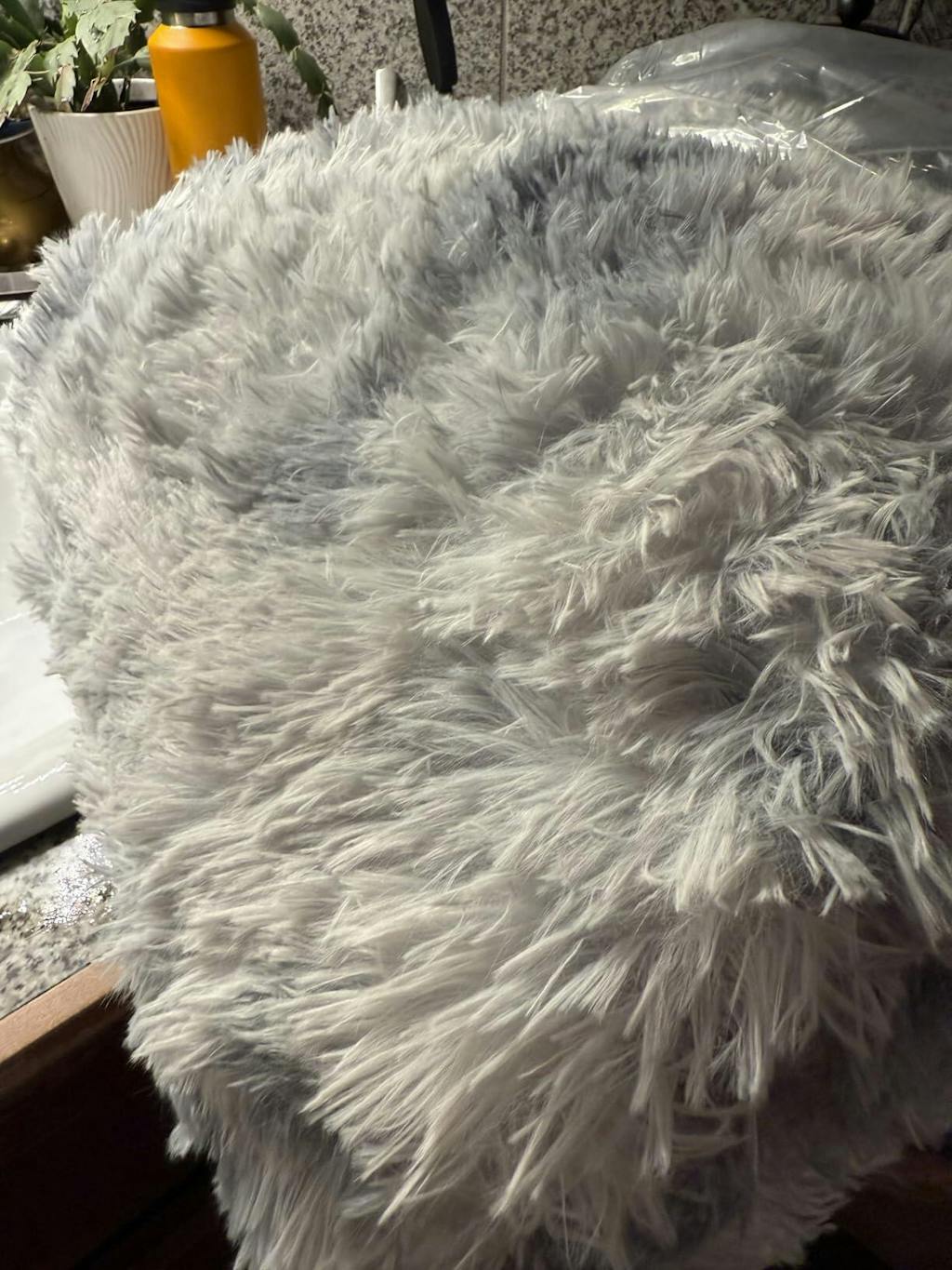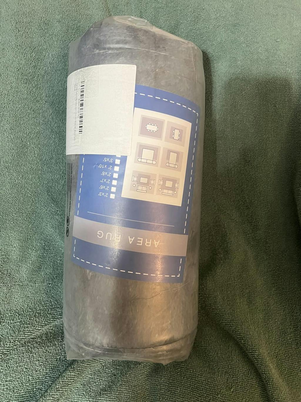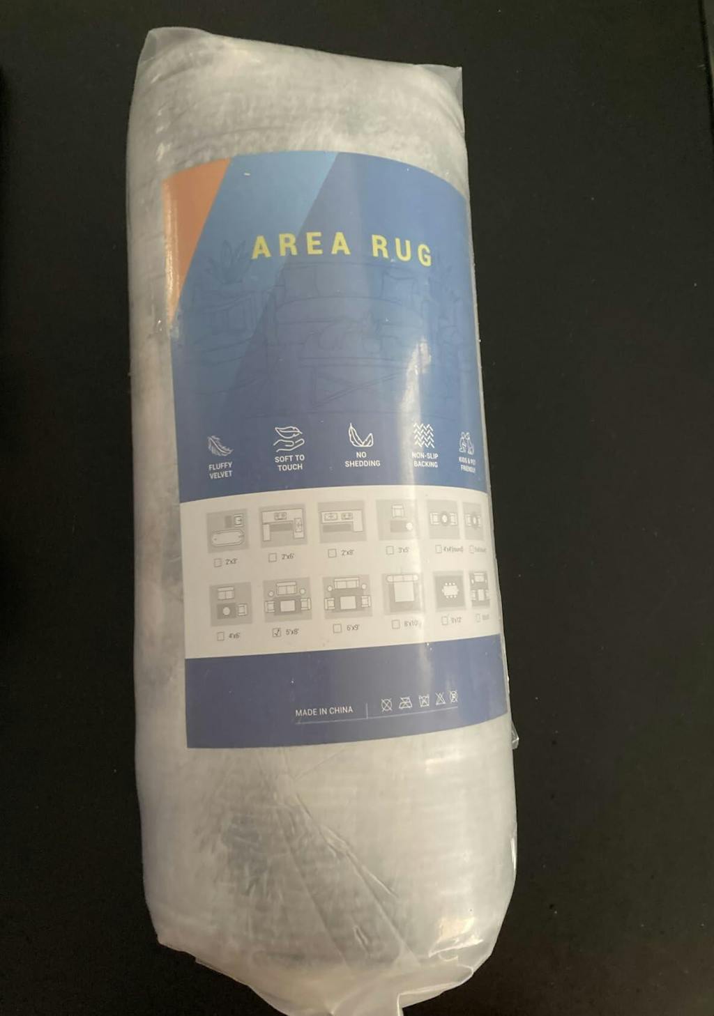 This fluffy rug came in a small compact box. I was expecting this big roll because of tue large size but it is a light weight material. It is very soft and l love the design. It feels very cool to the touch and nice and cushiony. It is easy to carry and move around and covers a good area of the room. It also has the non-slip surface on the bottom. I am very happy with this rug. I would be able to takenit to a laudramat to wash in a big machine.