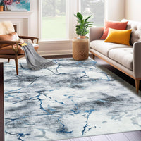 Garvee Large Area Rug 8x10 Marble Abstract Floor Carpet Foldable Non Slip Backing Contemporary Throw Rug Washable Ultra Soft Low Pile Accent Rug for Living Room Bedroom Classroom, Blue