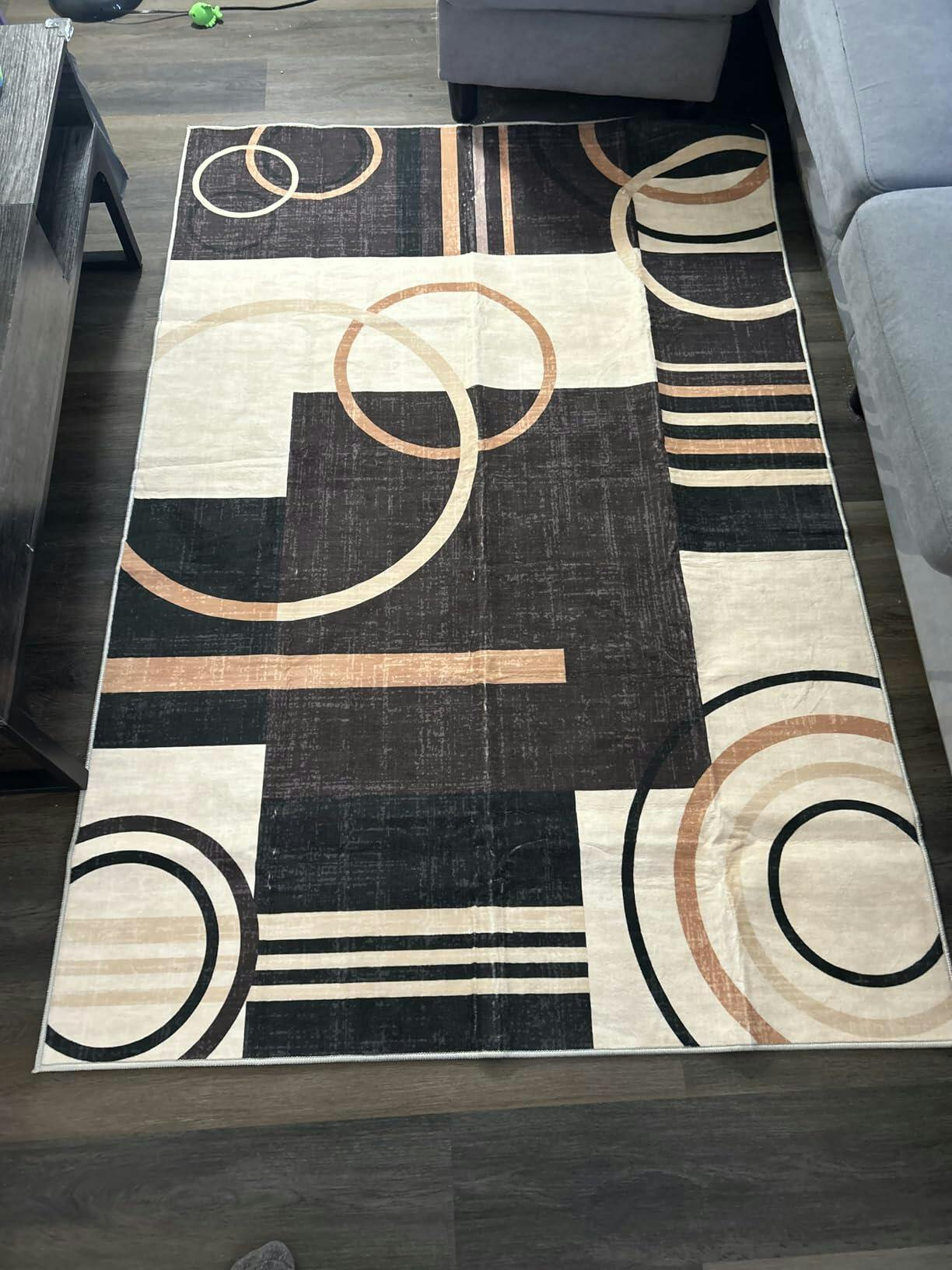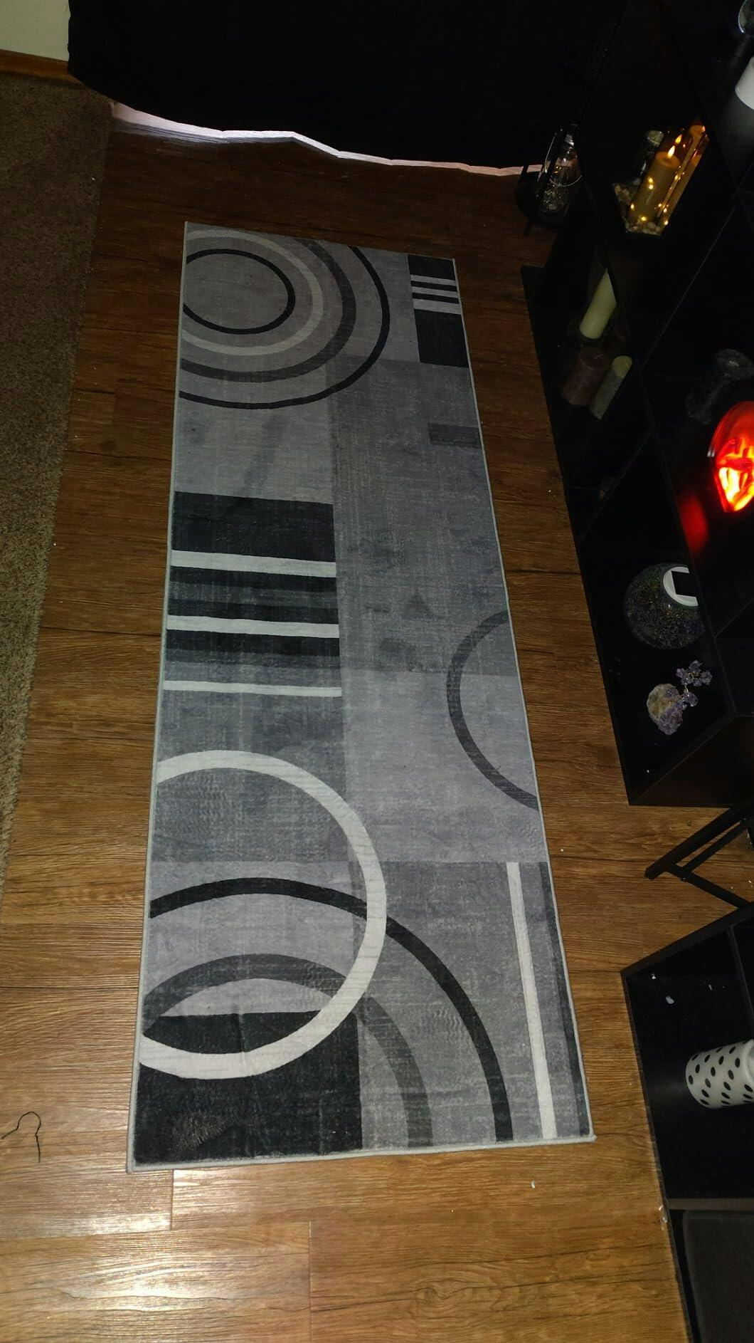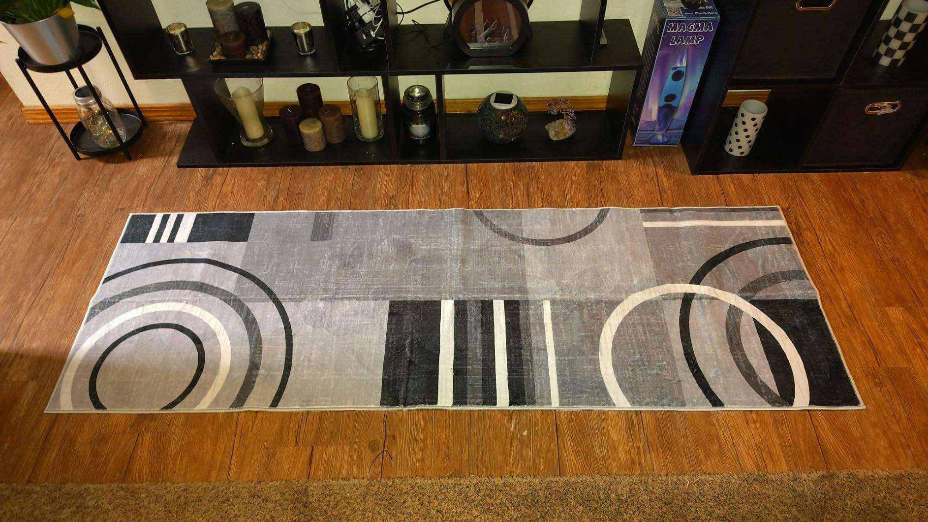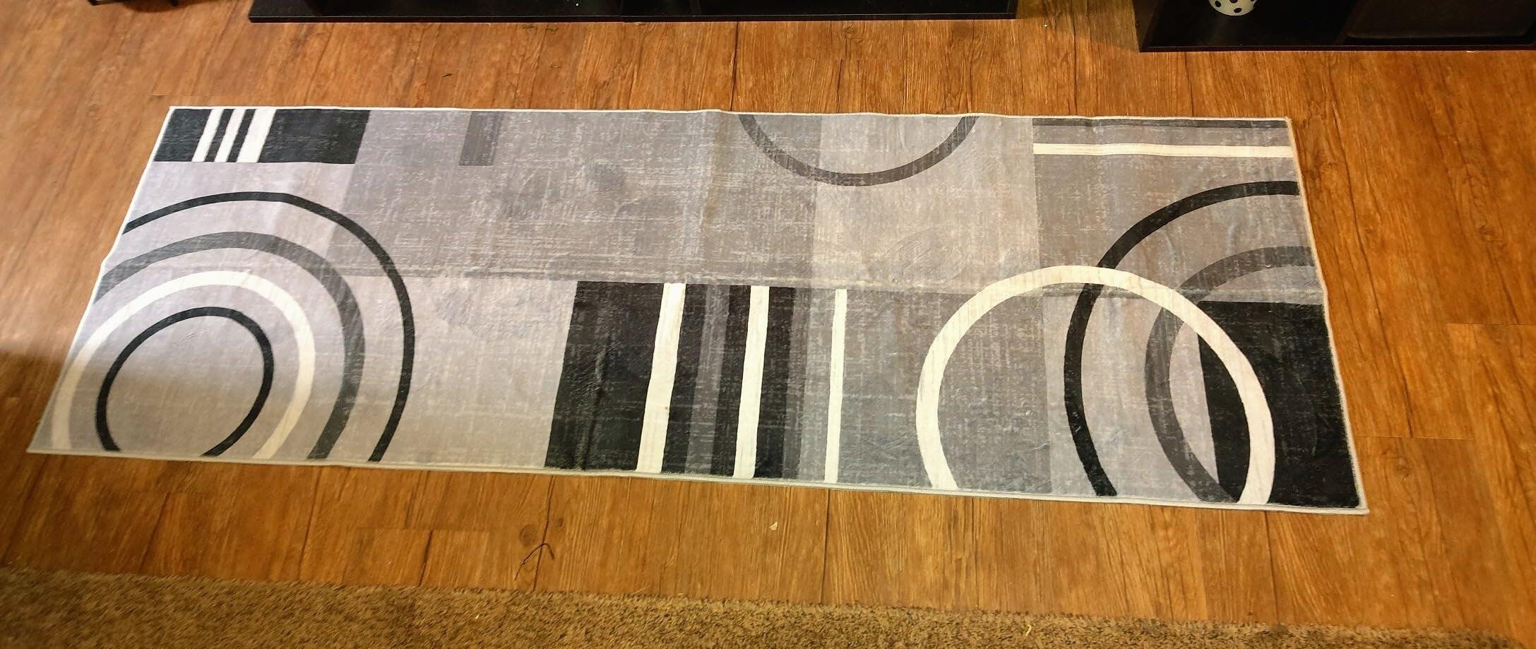The 4x6 Grey Abstract Circles rug is so soft! At first glance it looks like one of those nearly flat commercial rugs but when you touch it’s totally different. I have a preference for greys and black so I love this design. I’m trying to wait to put it down for our new furniture but I’m often tempted to put it down when I walk by it.When it arrived it was folded and appeared to be that way for awhile. I’m a little concerned about the lines from that, as it’s been over a week and they’re still bare. Though, I do expect them to change a little once it gets some traffic and the fibers move around a little.As of now, it’s fantastic. I’ll follow up with an update after its been down for a couple weeks.