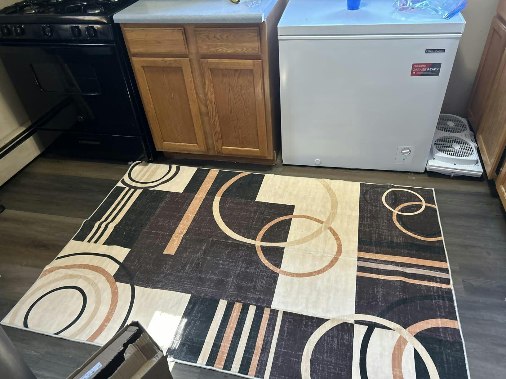 - Warm tips - Please let the carpet sit in a well-ventilated place for a while when you receive it, it can help disperse the residual odor. When area rugs arrives, there may be temporary creases, you can roll the washable rug in the opposite direction and lay it flat on the floor while applying pressure to the carpet, the creases will disappear completely in a few days.