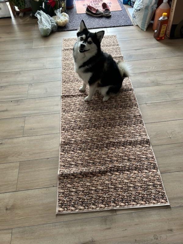 I got this for a Vine product review to use in the kitchen because it will cover the length of the counter. It is well made and good quality and would work great in any hallway, next to a bed, etc. The fact that it's washable makes it even better...especially if you have pets. And clearly it's doggy approved! We took it out to let it sit to flatten and the pup will not get off it!! RECOMMEND!