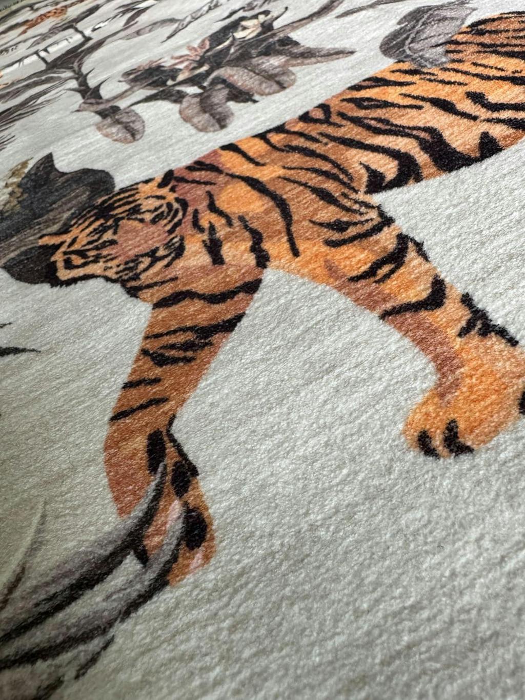- 【Botanical Jungle Accent Rugs】: Bring forest charm indoors with the botanical animal rug. The vivid tiger and floral print create an eye-catching accent rug, making it an inviting carpet for playrooms, dining rooms, or spaces needing a touch of wild style