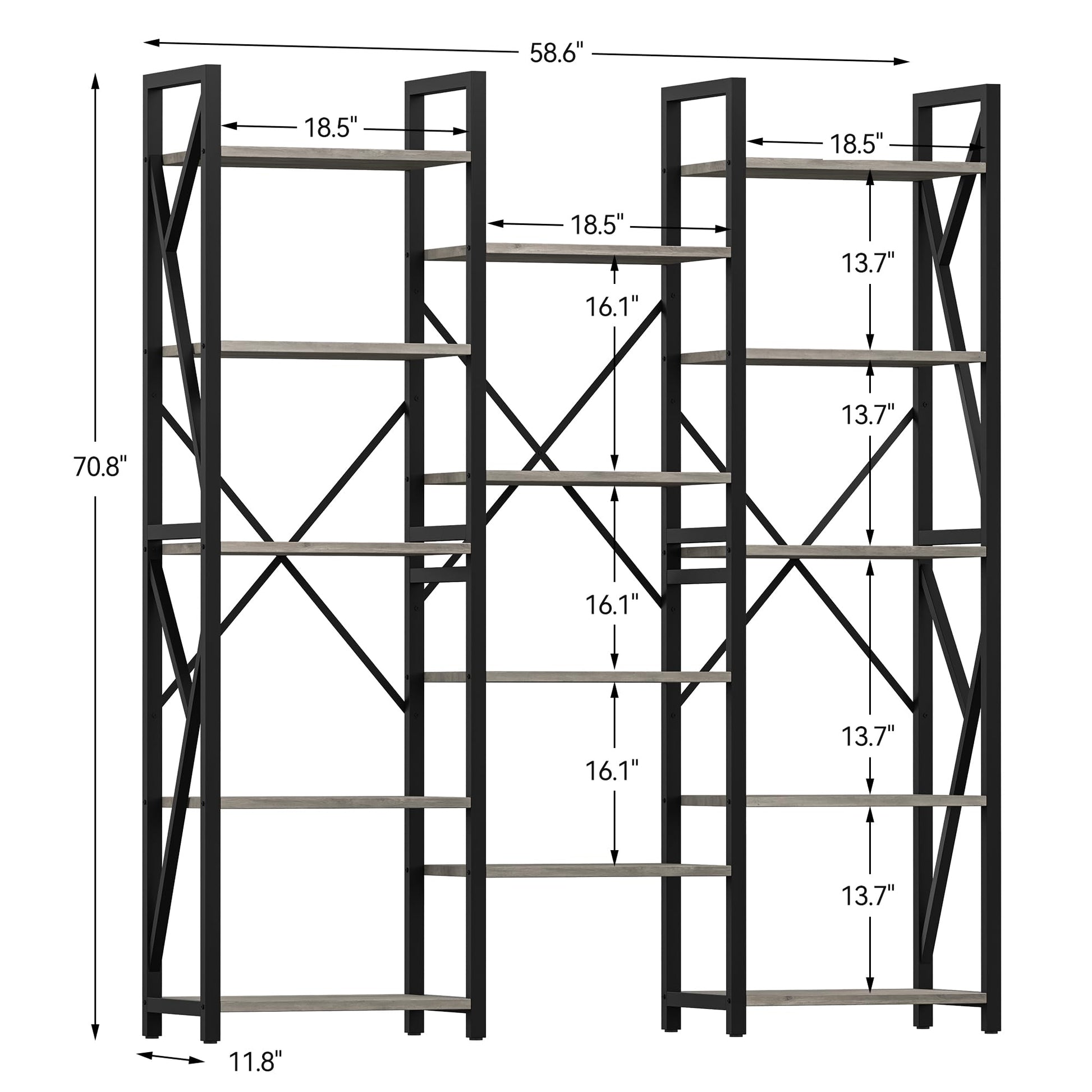 Garvee Triple Wide 5 Tier Book Shelf, Industrial Large Bookshelves, Metal Frame, MDF Board, Retro & Industrial Style, 70.8” x 58.6” x 11.8”, Living Room, Bedroom, Home Office