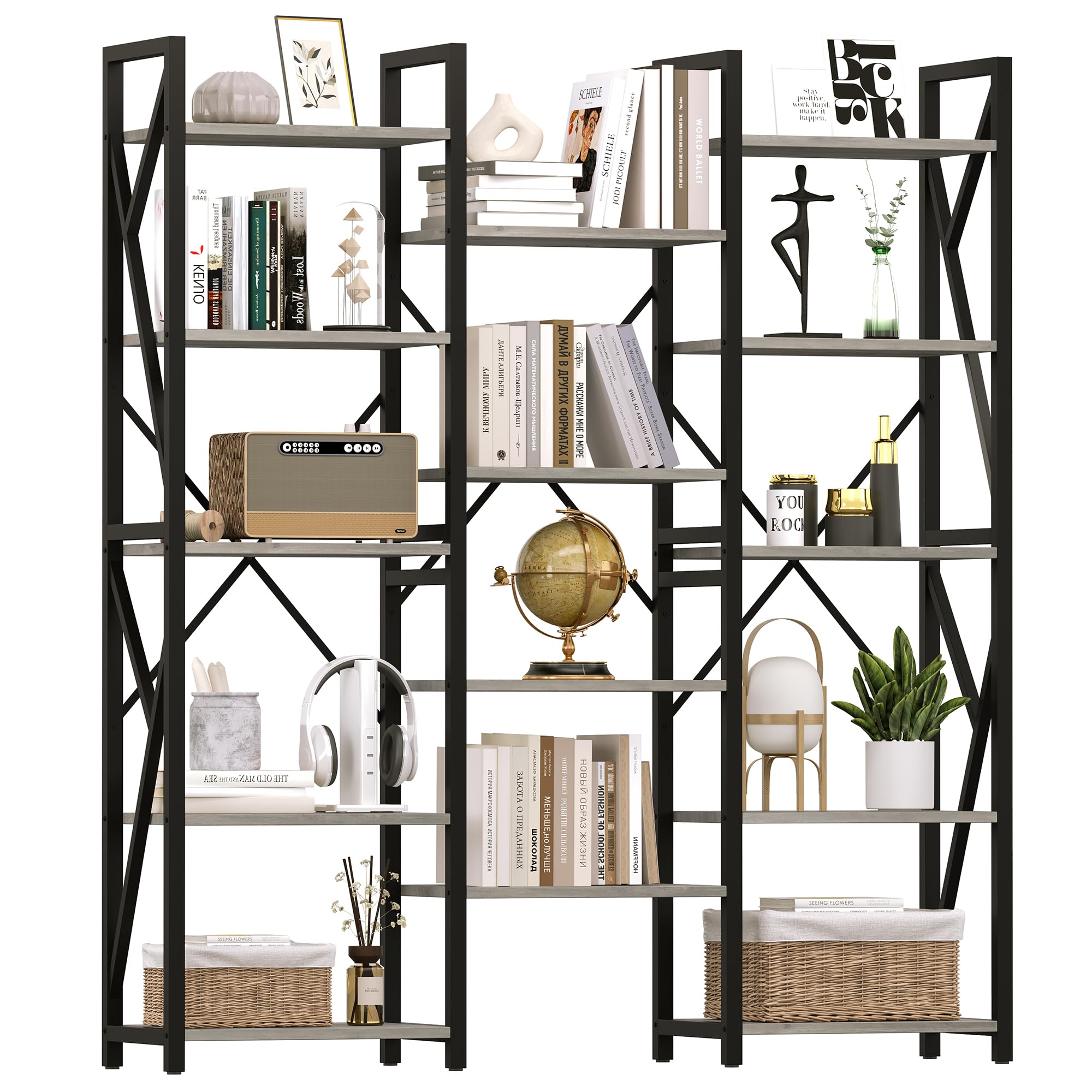 GARVEE Triple Wide 5 Tier Book Shelf: Industrial Elegance Meets Functionality