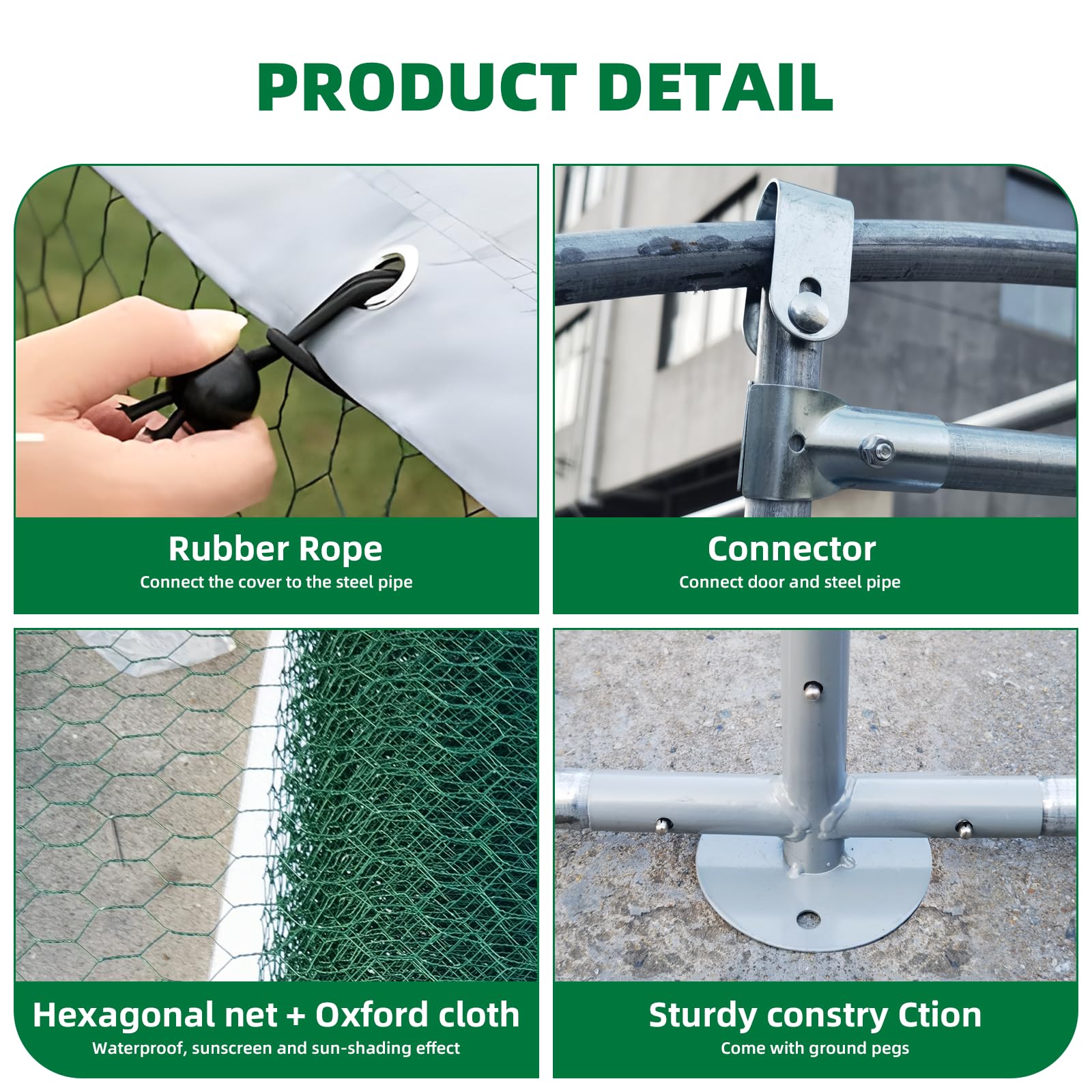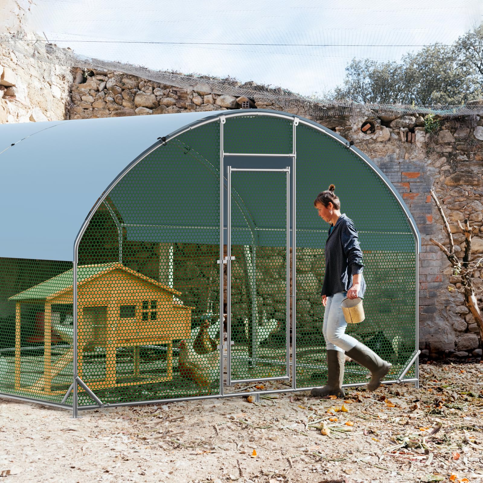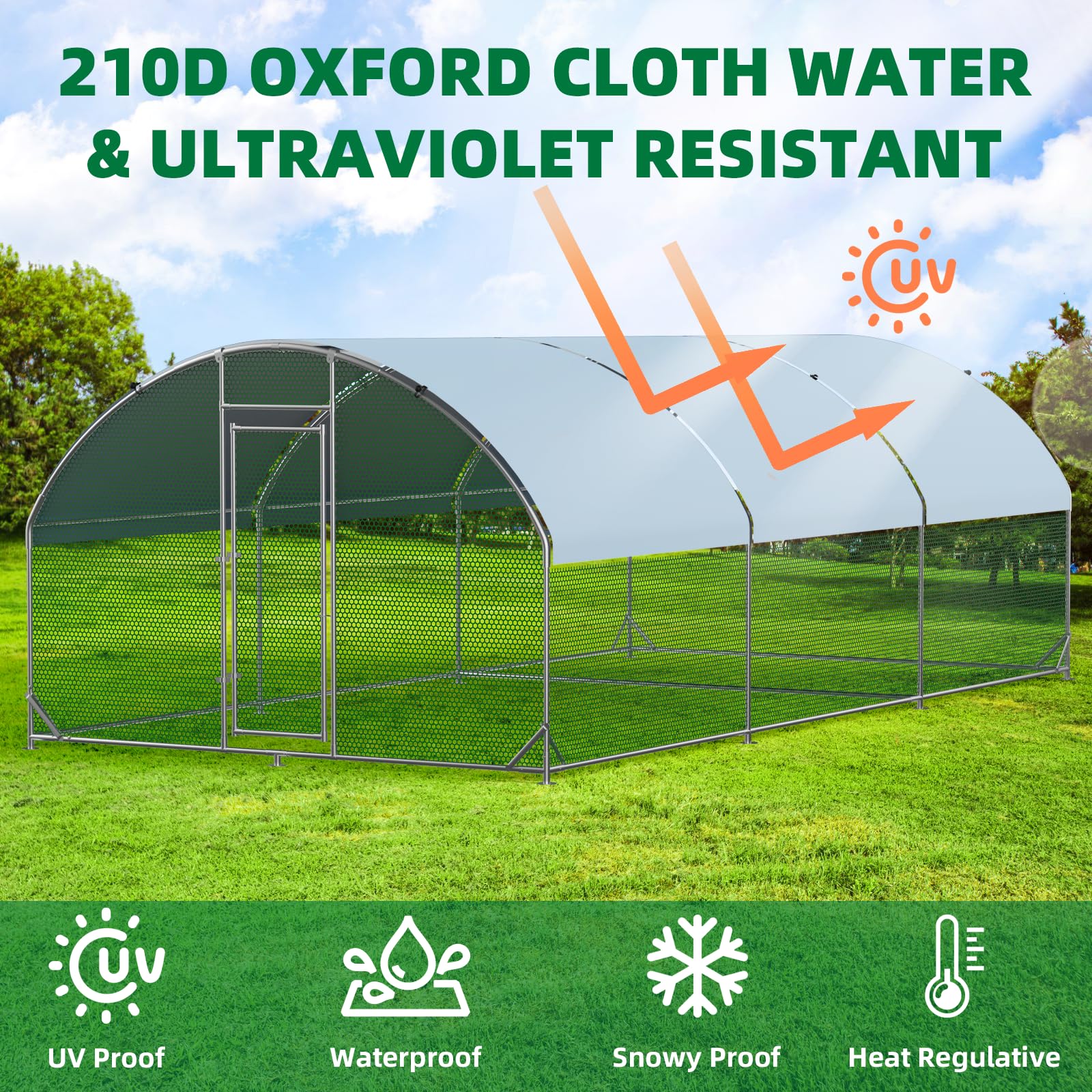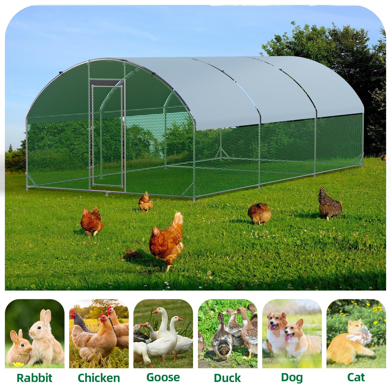 Garvee Large Metal Chicken Coop 9.2x18.7x6.5 Ft, Walk-in Poultry Cage Duck House with Waterproof Anti-Uv Cover Snowy Proof, Tri-Supporting Reinforced, Robust Wire Mesh, Galvanized Iron Pipes, for Farm Use