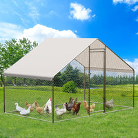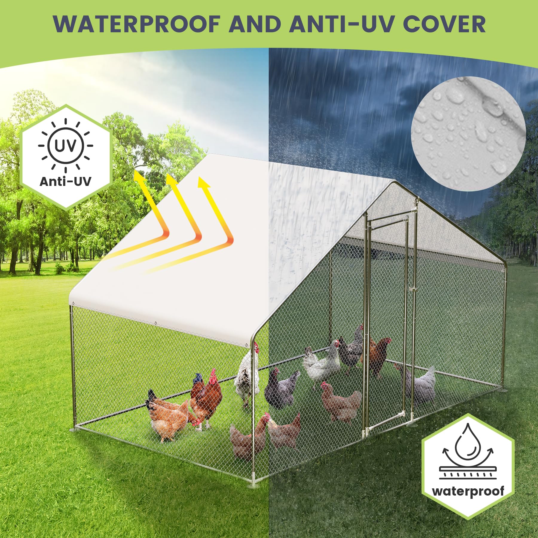 Garvee Large Metal Chicken Coop, Walk-in Poultry Cage, Chicken House with Waterproof and Anti-Ultraviolet Cover for Outdoor Yard Farm Silver - 9.8*19.7*6.6FT