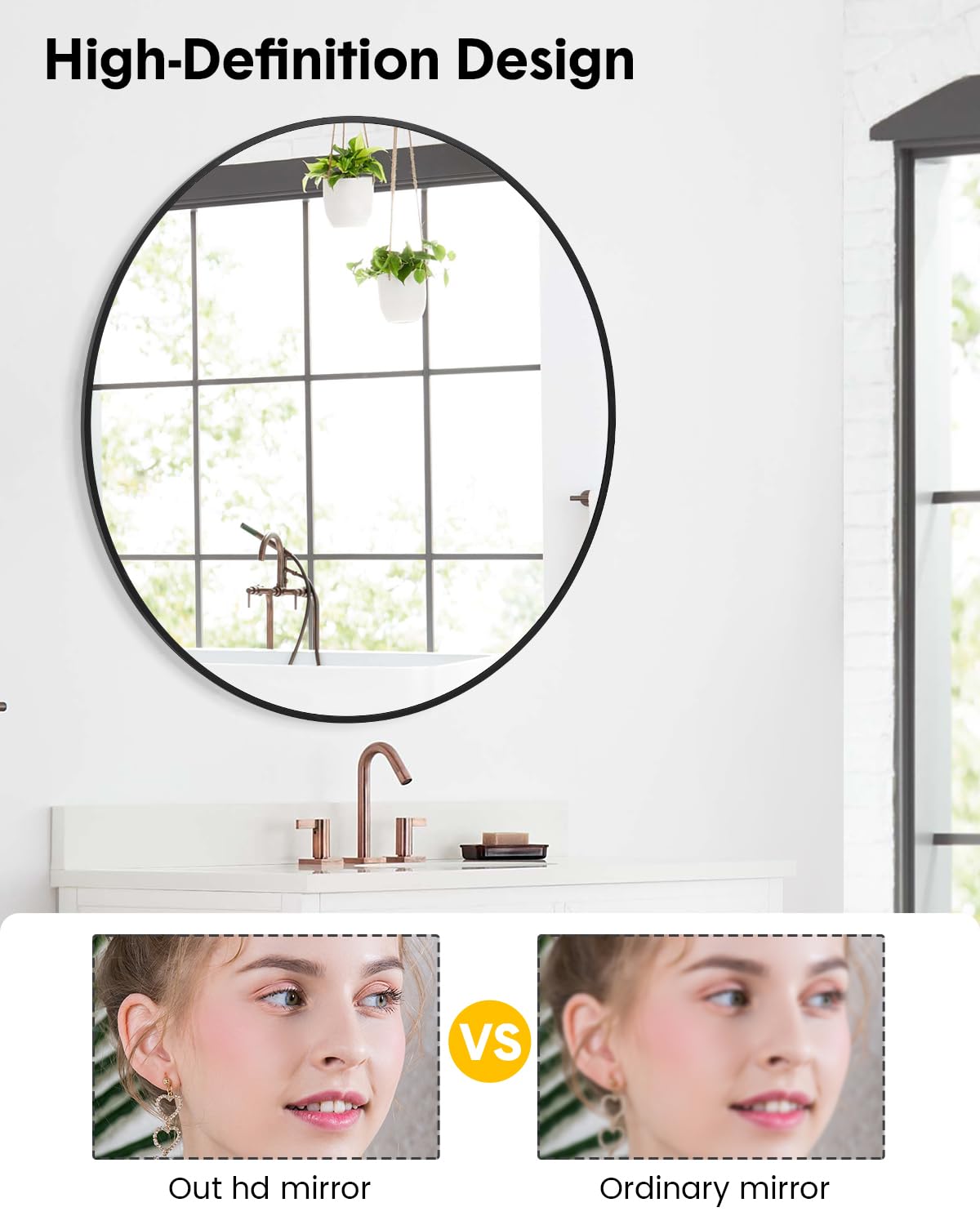 Garvee Large Round HD Eco-Friendly Bathroom Mirror, 36 inch Gold Circle, Small Matte Black Metal Frame, Easy Install for Vanity, Living Room
