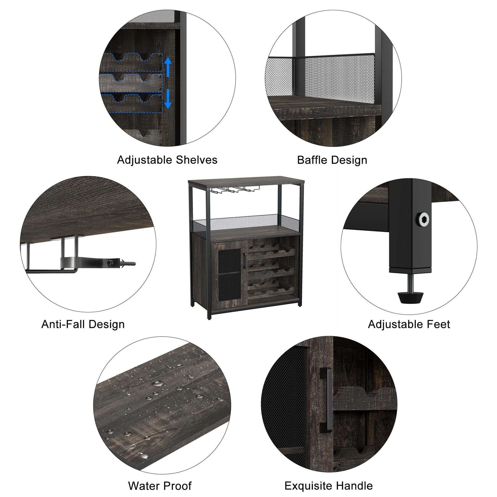Garvee Large Storage Wine Cabinet with Detachable Rack & Mesh Door, Grey - Dark Wood
