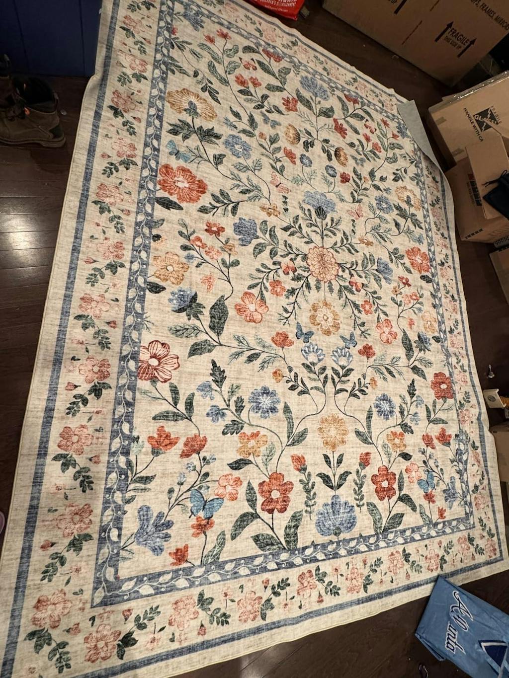 - Effortless Maintenance: Keep the farmhouse floral rug clean with its machine-washable design. Wipe up spills promptly and vacuum regularly to maintain its condition. For deeper cleaning, toss it in the washing machine with cold water and neutral detergent