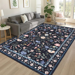Garvee Floral 10x13 Black Large Washable Area Rug for Living Room, Non-Slip Non-Shedding Soft Vintage Rug, Low Pile Farmhouse Floral Carpet, Non-Shedding Foldable Printed Rug for Bedroom