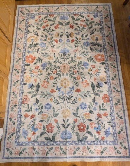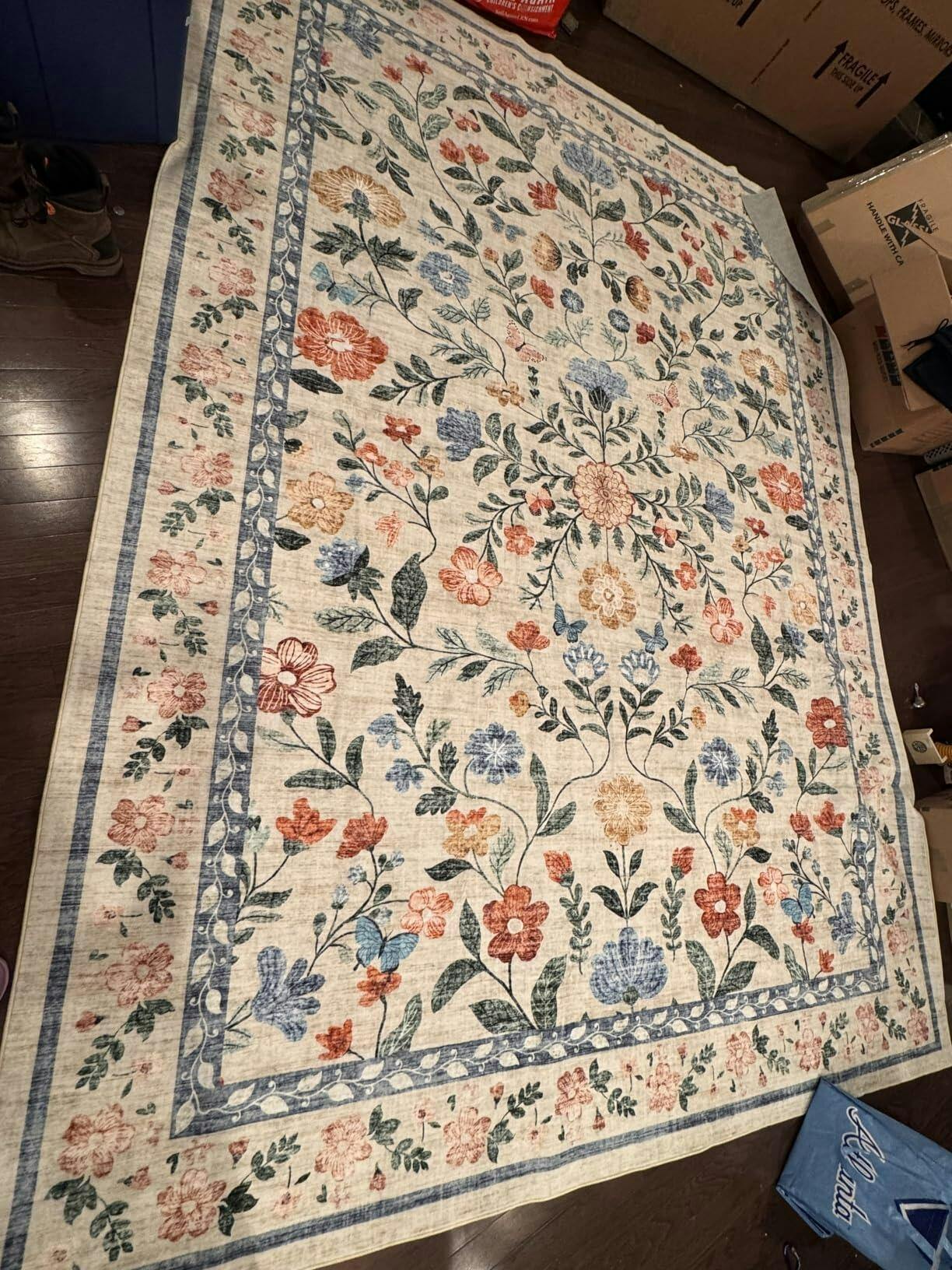 Garvee Large Washable Area Rug 10x13 Light Blue - Soft Low Pile, Non-Slip Rubber Backing - Faux Wool, Vintage Floral Design - Foldable, Non-Shedding - Living Room, Bedroom, High-Traffic Areas
