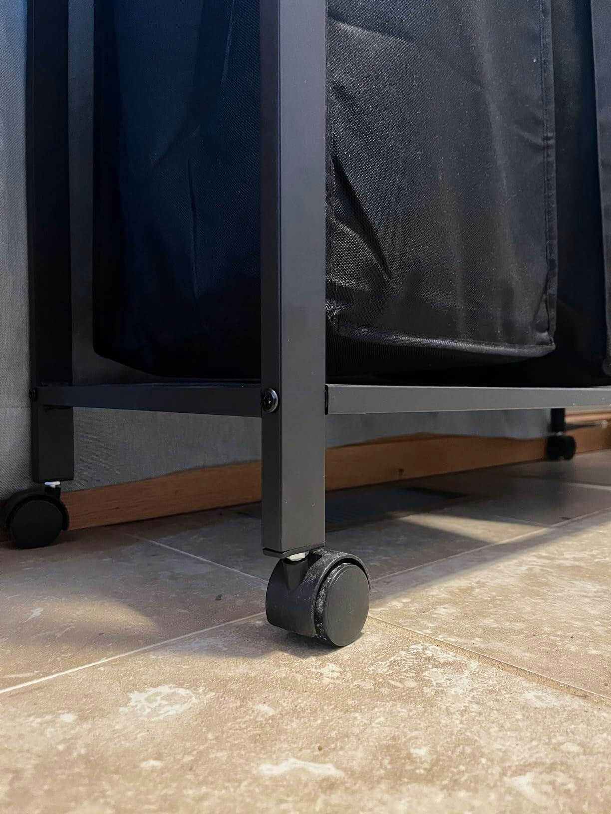 Garvee Laundry Sorter 2 Section Laundry Basket Organizer With Hanging Bar Laundry Hamper Organization With Storage Shelf With Heavy Duty Rolling Lockable Wheels, Black