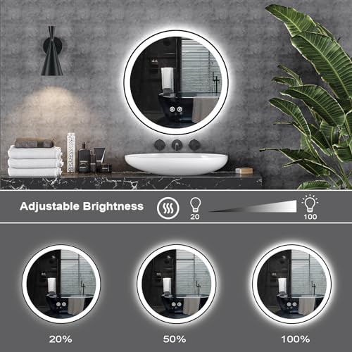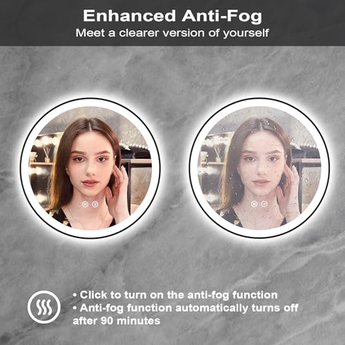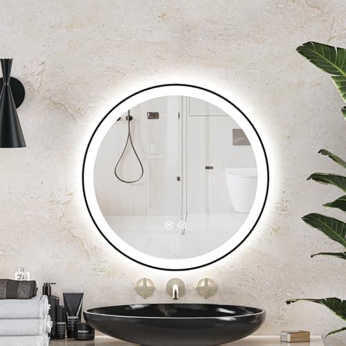 Garvee LED Bathroom Mirror 24x24 Inch Black Frame + Front & Backlight + 3 Colors Dimmable + Anti-Fog + Wall Mounted + Makeup, Shaving