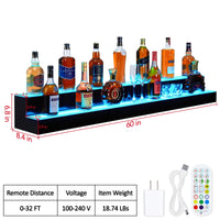 Transform your bar area into a captivating showcase with our state-of-the-art 60" LED Lighted Liquor Bottle Display Shelf. Perfect for home enthusiasts, professional establishments, and anyone looking to add a touch of elegance to their space.