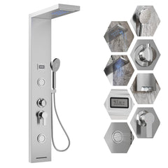 Garvee Led Shower Panel Tower System, 6 In 1 Shower Panel with Rainfall Waterfall Shower Head, 2 Body Spray, 3-Function Handheld Shower, Tub Spout,Temperature Display,Stainless Steel Brushed Wall-Mounted