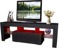 Garvee Modern LED TV Stand with 16 Color LED Lights, Storage Drawers, Particle Board & Tempered Glass, Black for Bedroom and Living Room