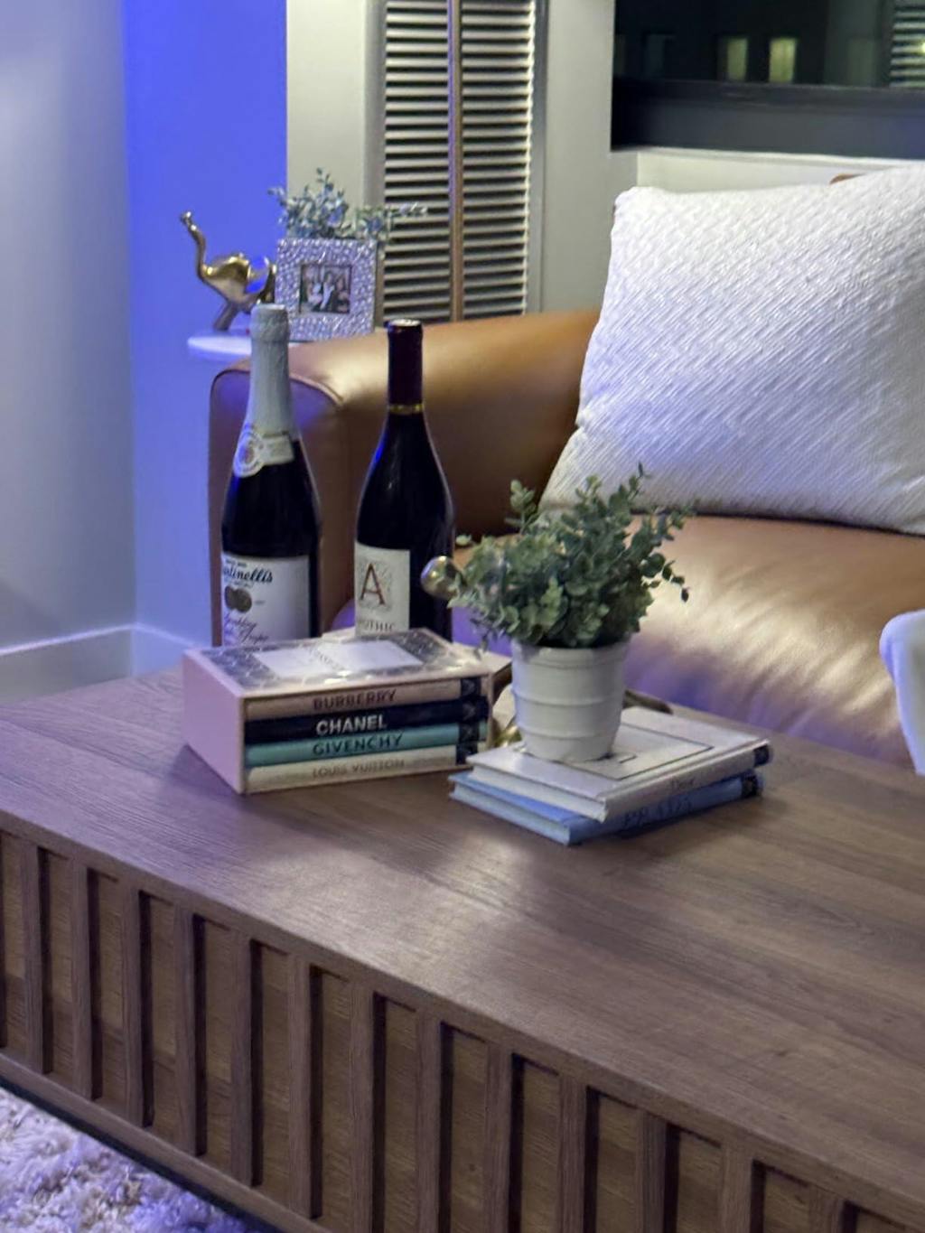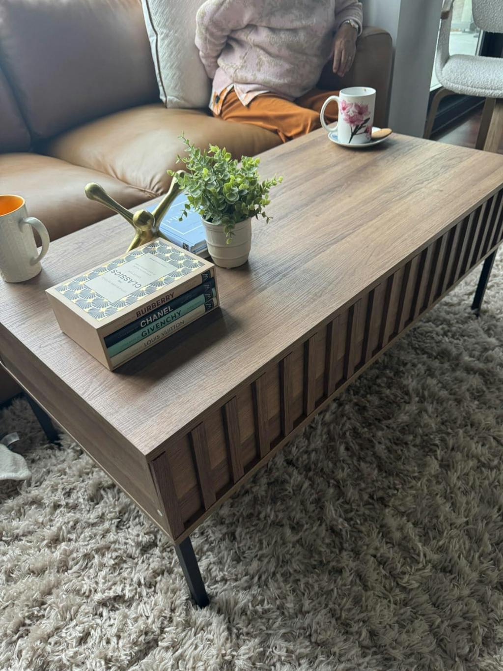 The natural wood finish and 3D wooden strip give it a timeless appeal that complements a variety of interior styles, from traditional to contemporary, making it a perfect focal point in any room.One of the standout features of this coffee table is the hidden storage compartment, cleverly concealed beneath the lift-top surface. This storage space provides ample room for stashing away remote controls, magazines, books, blankets, helping you maintain a clutter-free living area.Whether you're relaxing in the living room, working in your home office, or entertaining guests, this coffee table serves as a stylish and practical centerpiece for your space.