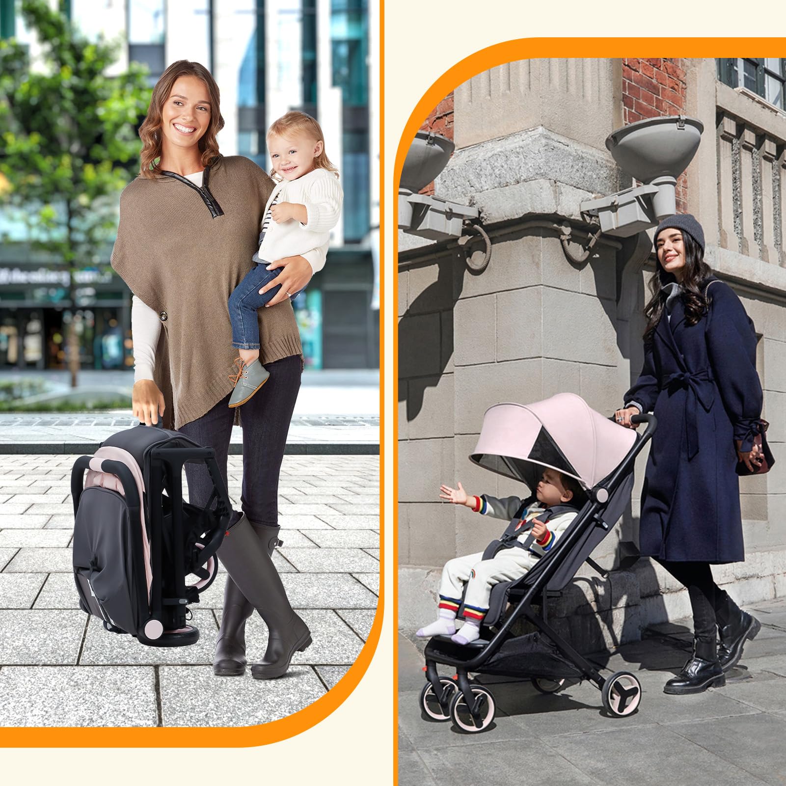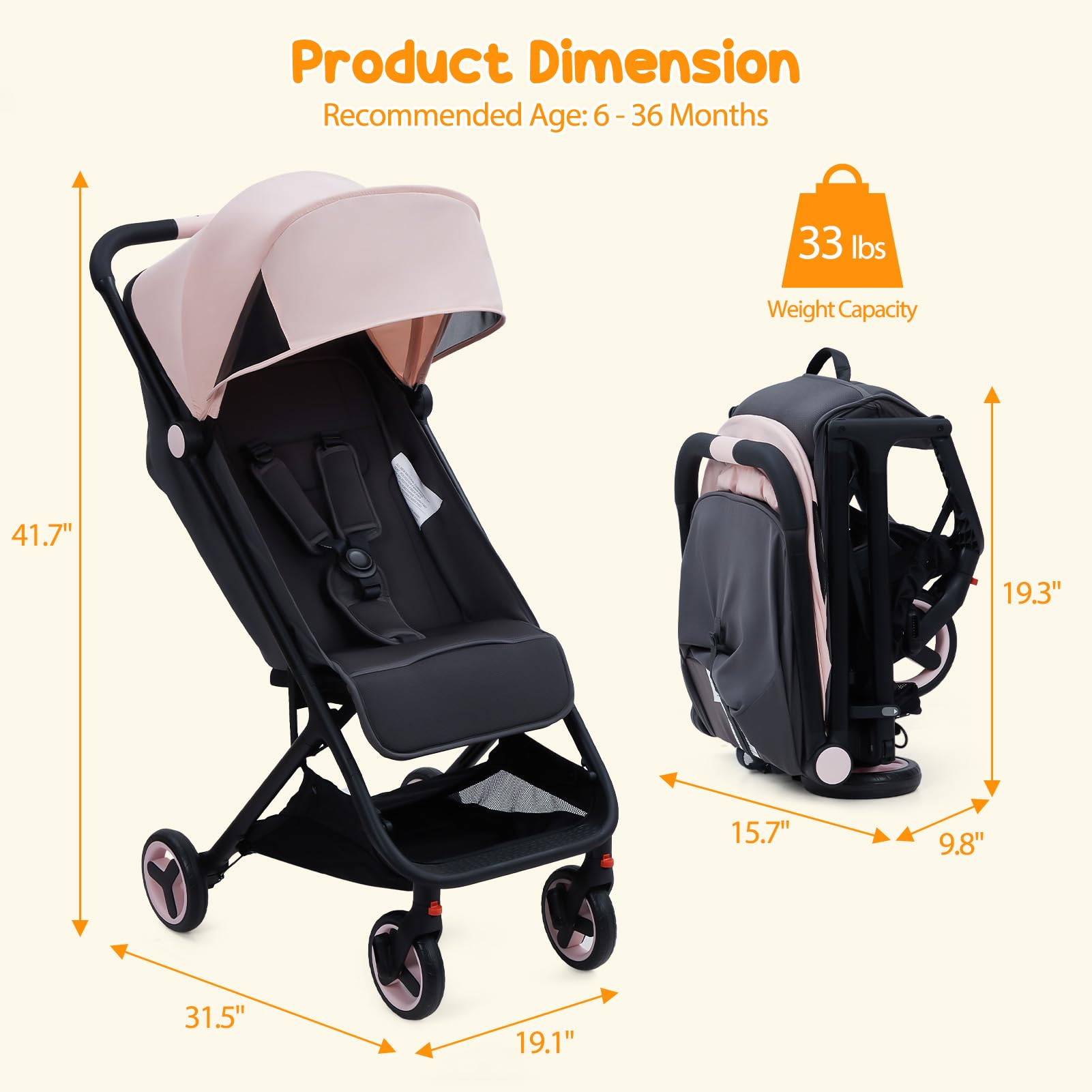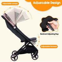 Garvee Lightweight Compact Stroller, One Hand Fold, Airplane Friendly, Reclining Seat, Canopy, Smooth Suspension, Travel Ready, Pink, Ideal for Travel - Pink