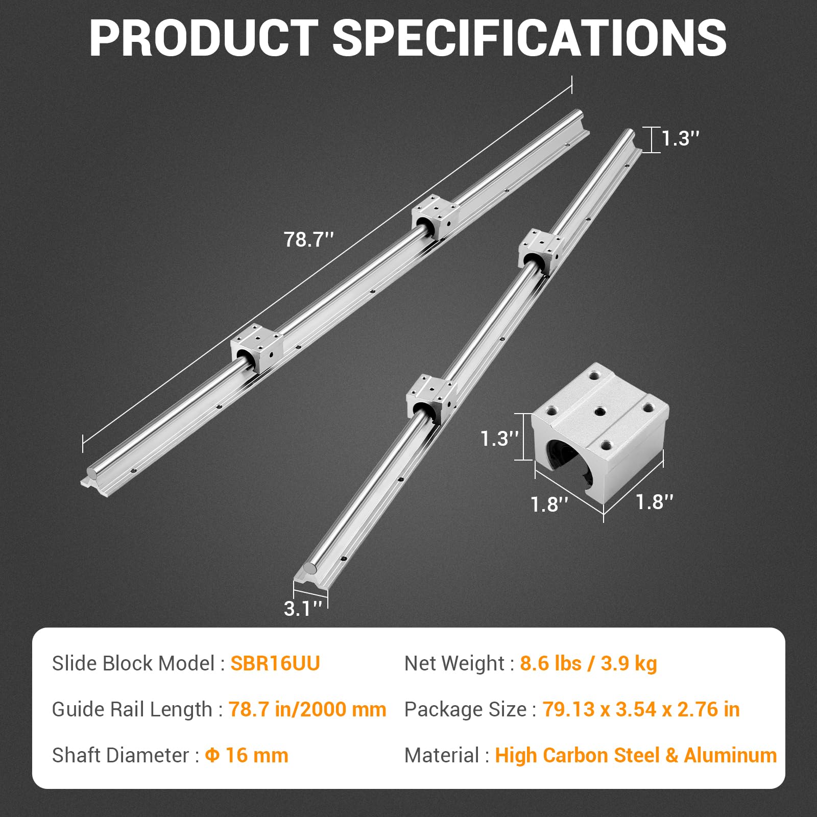 - Complete Linear Guide Kit: Get everything you need in one package! Our linear bearing kit comes with two 800 mm (31.5") SBR16 guide shafts and four SBR16UU blocks. The smooth slider works seamlessly with the guide, thanks to internal linear bearings that ensure effortless gliding