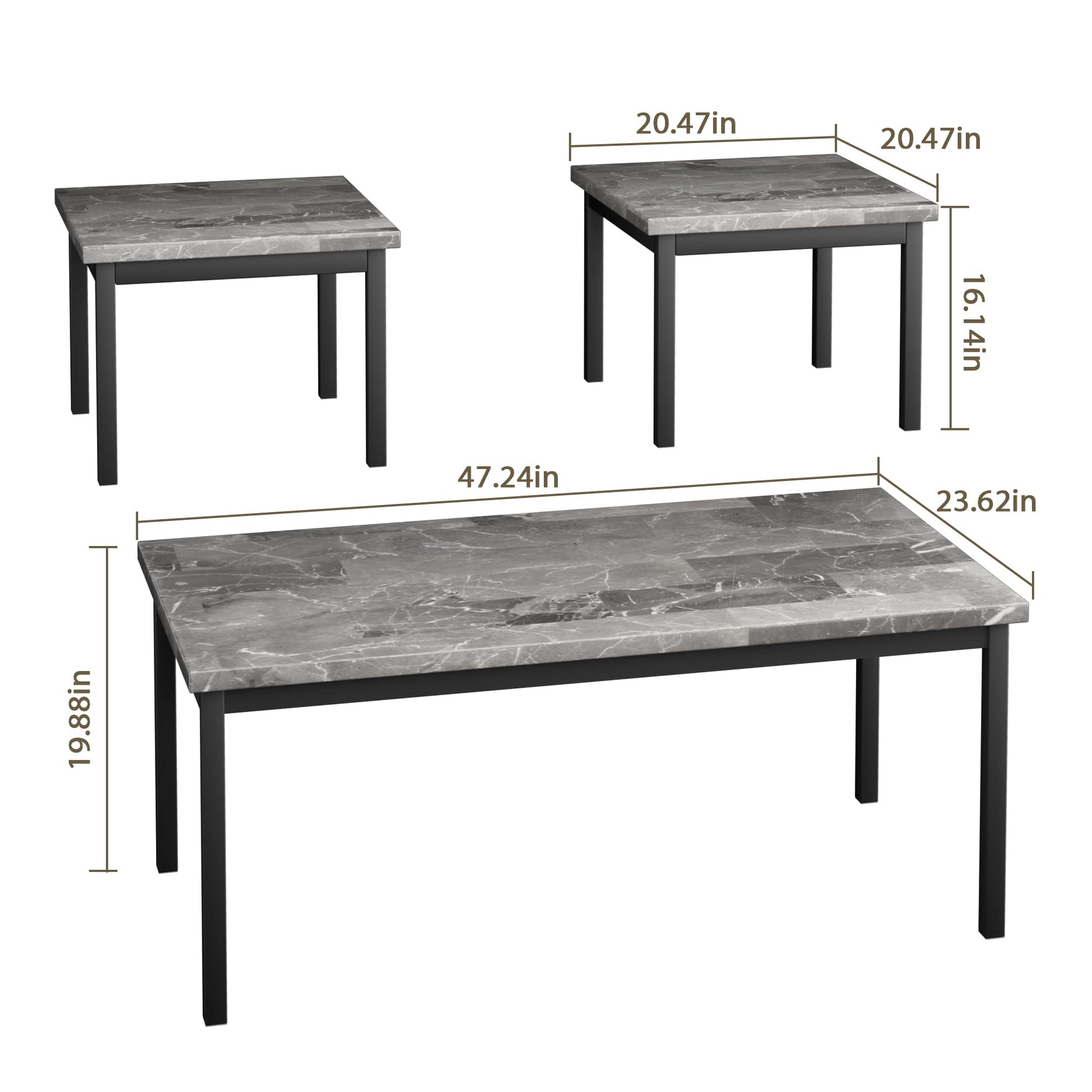 Garvee Marble Living Room Table Set: 1 Large & 2 Square End Tables