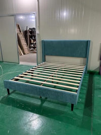 Garvee King Upholstered Bed Frame Velvet Wingback Headboard Wooden Slat Support Easy Assembly Box Spring Optional