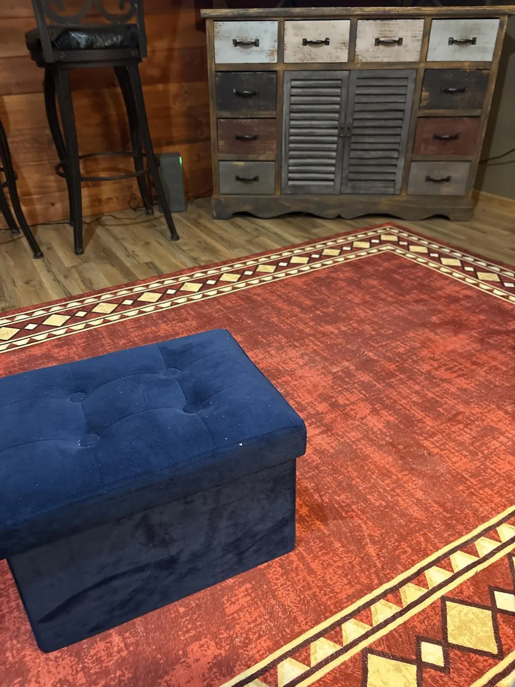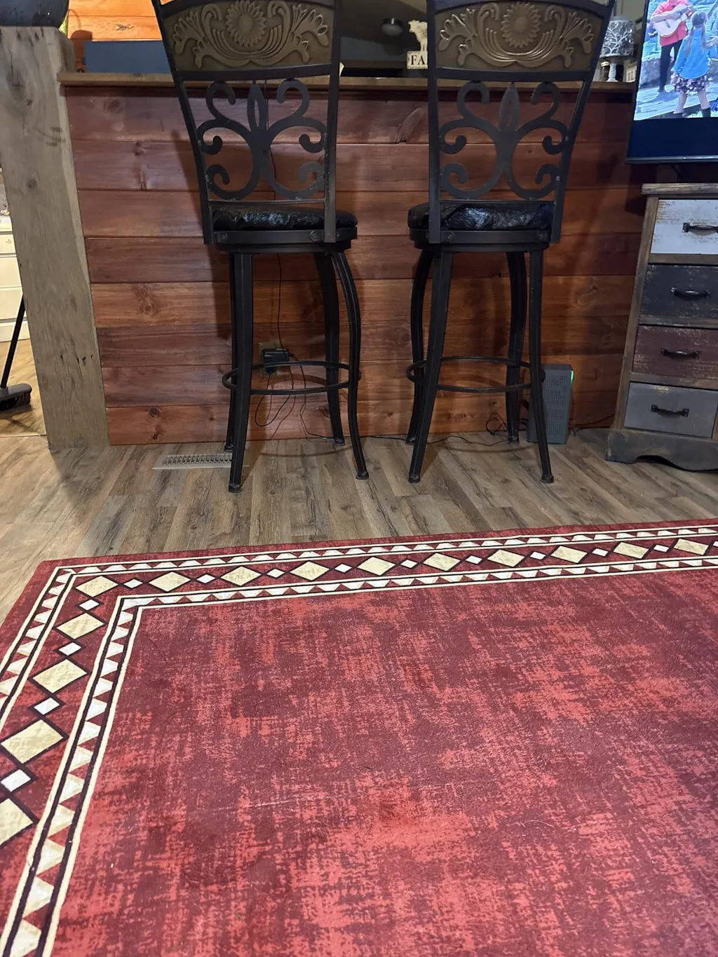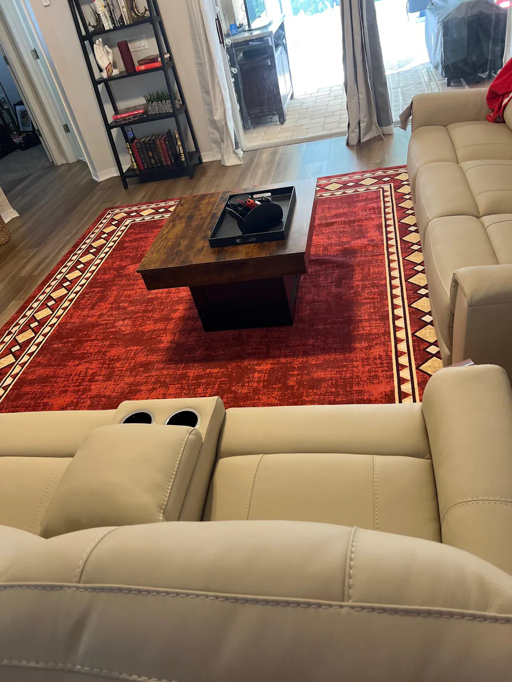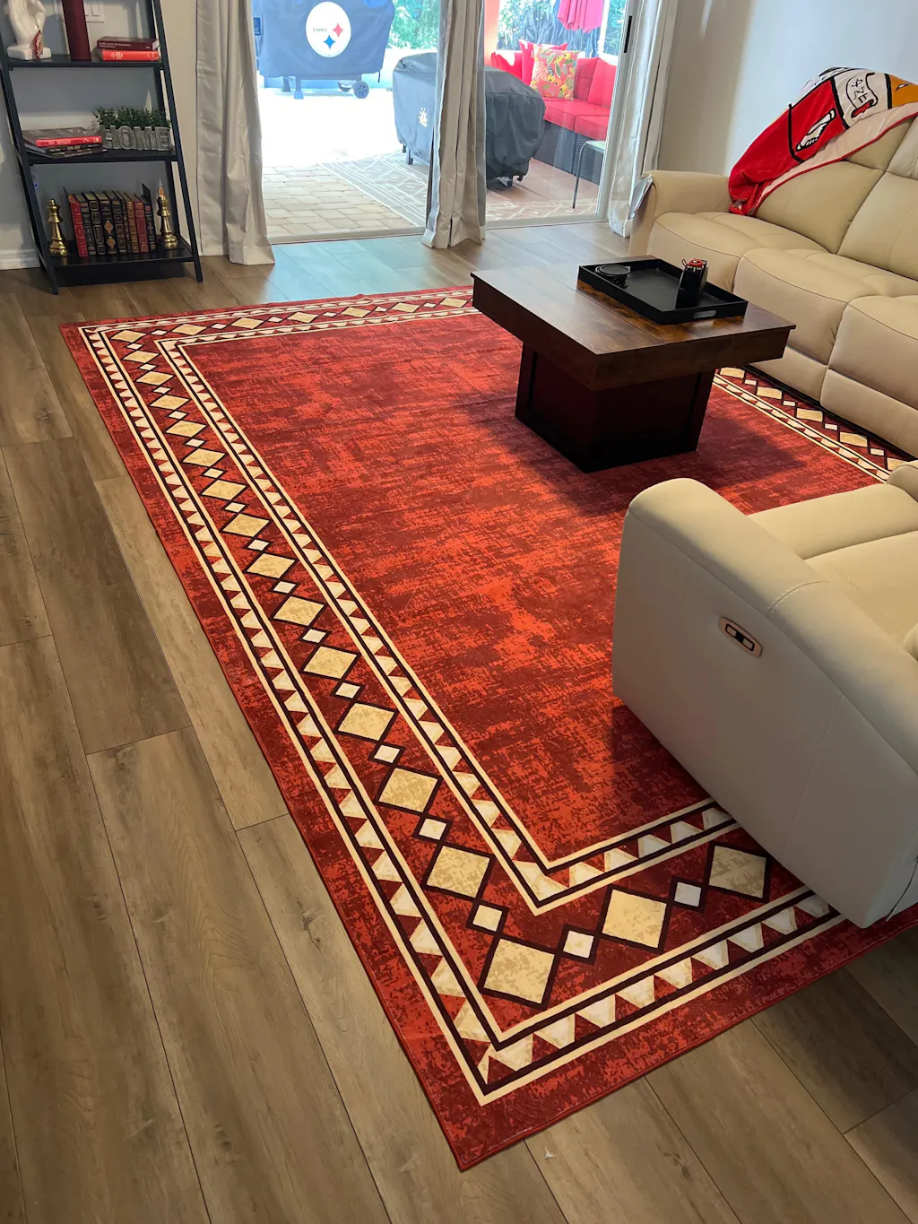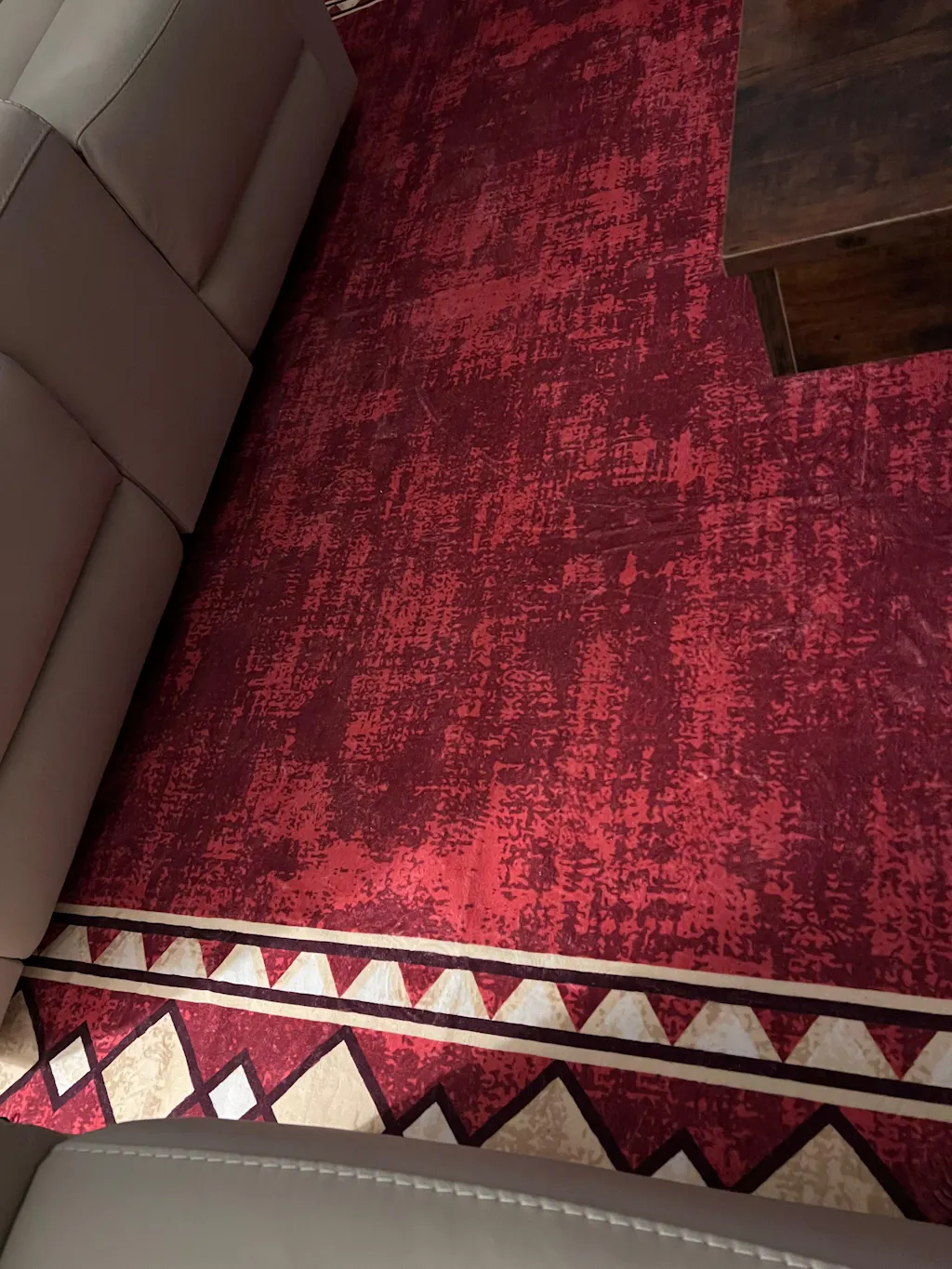 I purchased the red rug with the diamond border and it looks fabulous with the furniture and in my space.