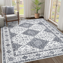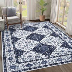 Garvee Machine Washable Area Rugs 5x7 Vintage Printed Floor Carpet with Non-Slip Backing, Soft Low Pile Area Rugs, Oriental Accent Carpet for Entryway, Laundry, Kitchen, Blue