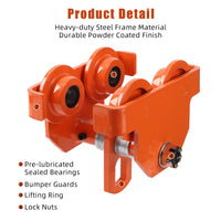 Garvee 2200LBS Manual Beam Trolley, Dual Wheels, Adjustable Width