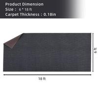 High-Quality Marine Carpet Color: Black; Size: 6 x 18 ft; Carpet Thickness: 0.18 in (4.6 mm); Coverage Area: 108 sq.ft. Crafted with upgraded polyester fiber, our premium marine carpet offers long-lasting durability. Please note that color may vary slightly due to different visual angles and lighting conditions.