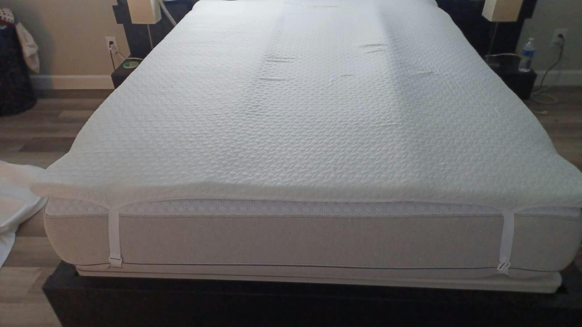 - Skin-Friendly Bamboo Cover - A zippered cover comes with the topper features adjustable elastic straps in the 4 corners and non-slip fabric on the bottom, help to keep the topper secure on your mattress