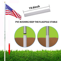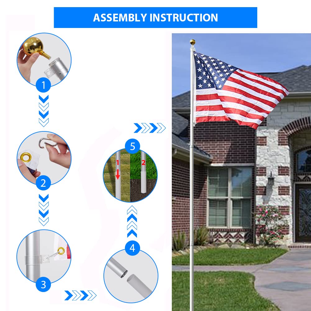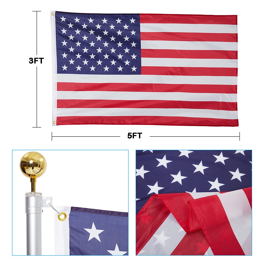 Package Included 1 x 20ft Heavy Duty Aluminum Flag Pole; 1 x American National Flag; 4 x Stainless Steel Clips; 1 x PVC Sleeve Pipe; 1 x Gold Ball Topper; 1 x Instruction