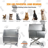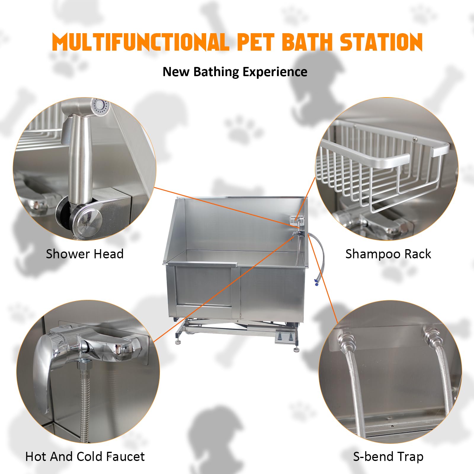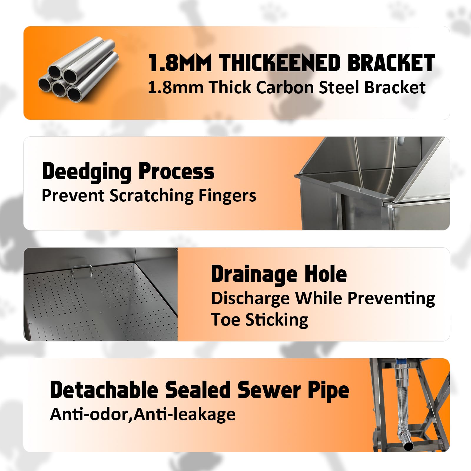 - Special Design: Our dog grooming tub features anti-slip ramps along with a multi-functional shower unit, enabling convenient storage of pet cleaning supplies in the integrated soapbox. The sealed latches guarantee no water leakage during pet bathing, offering a hassle-free and secure bathing experience.