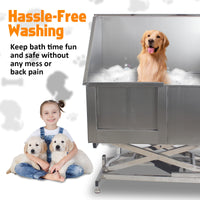 Garvee 50” Dog Washing Station Electric Height Adjustment, Stainless Steel Dog Bathtub with Soap Box, Faucet, Professional Dog Bathing Station for Multiple Pets
