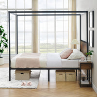 Transform your bedroom into a luxurious retreat with our stylish four-poster metal canopy bed frame. Designed for both aesthetics and practicality, it's the perfect centerpiece for any modern home decor.