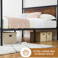 The elegant four-poster metal design with a wooden headboard complements any home decor style, adding a touch of sophistication to your bedroom.