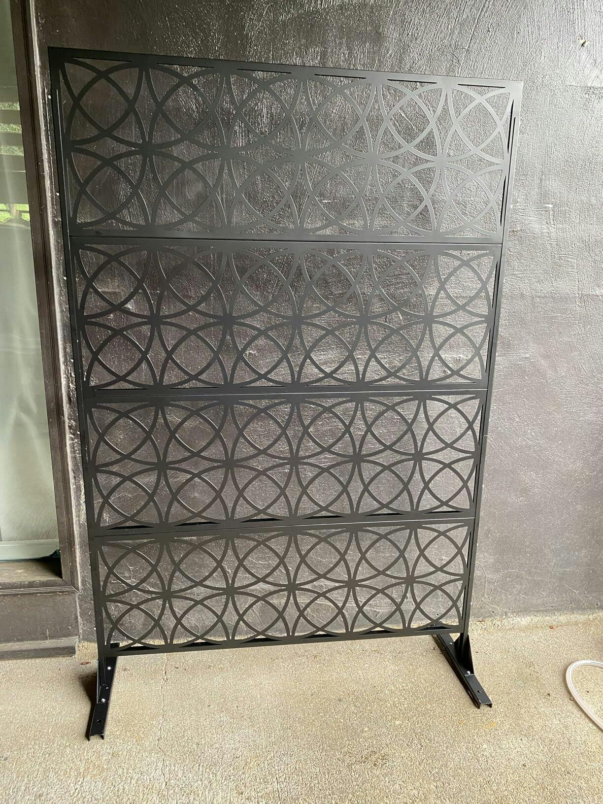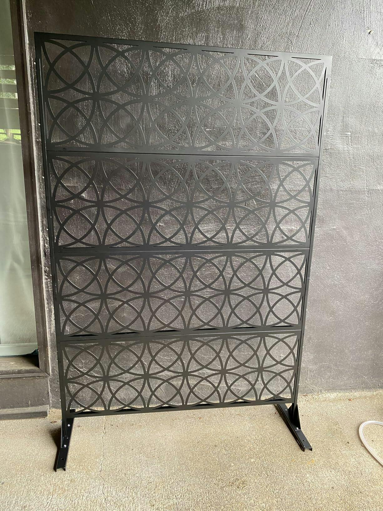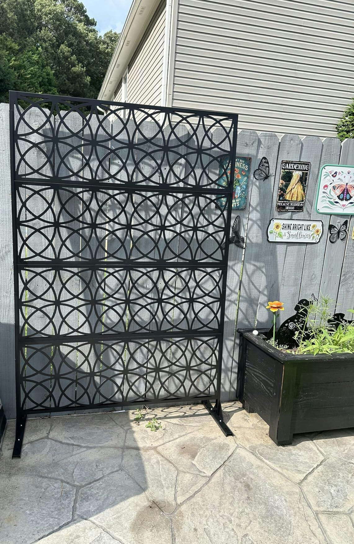 GARVEE Metal Privacy Screen with Stand - 71"X 46" Freestanding Outdoor Decorative Privacy Panels. Weather-Resistant Rustproof Room Divide (Black),Copper CoinI love this privacy panel. We are going to use it outside so people passing by won't be able to see into a section of our back porch. It was super easy to assemble - took my hubby less than 30 minutes. It is solid and has weight to it. It looks so good! Love the copper coin design. Functions perfectly for that little bit of extra privacy.