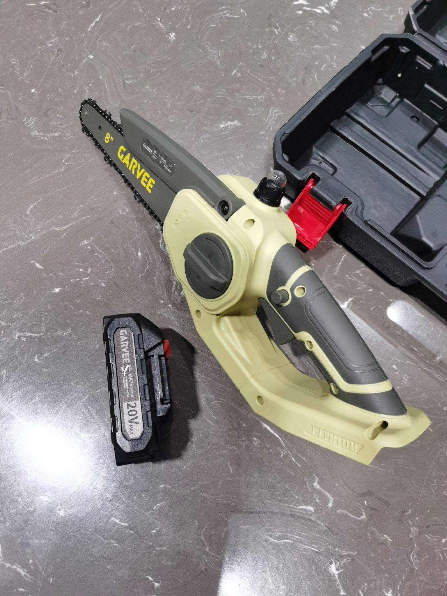 Drives the mini chainsaw to cut 8-inch branches in about 20 seconds with smooth, effortless precision thanks to a deep quenching process on the chain. (actual time may vary depending on the size and hardness of the wood)