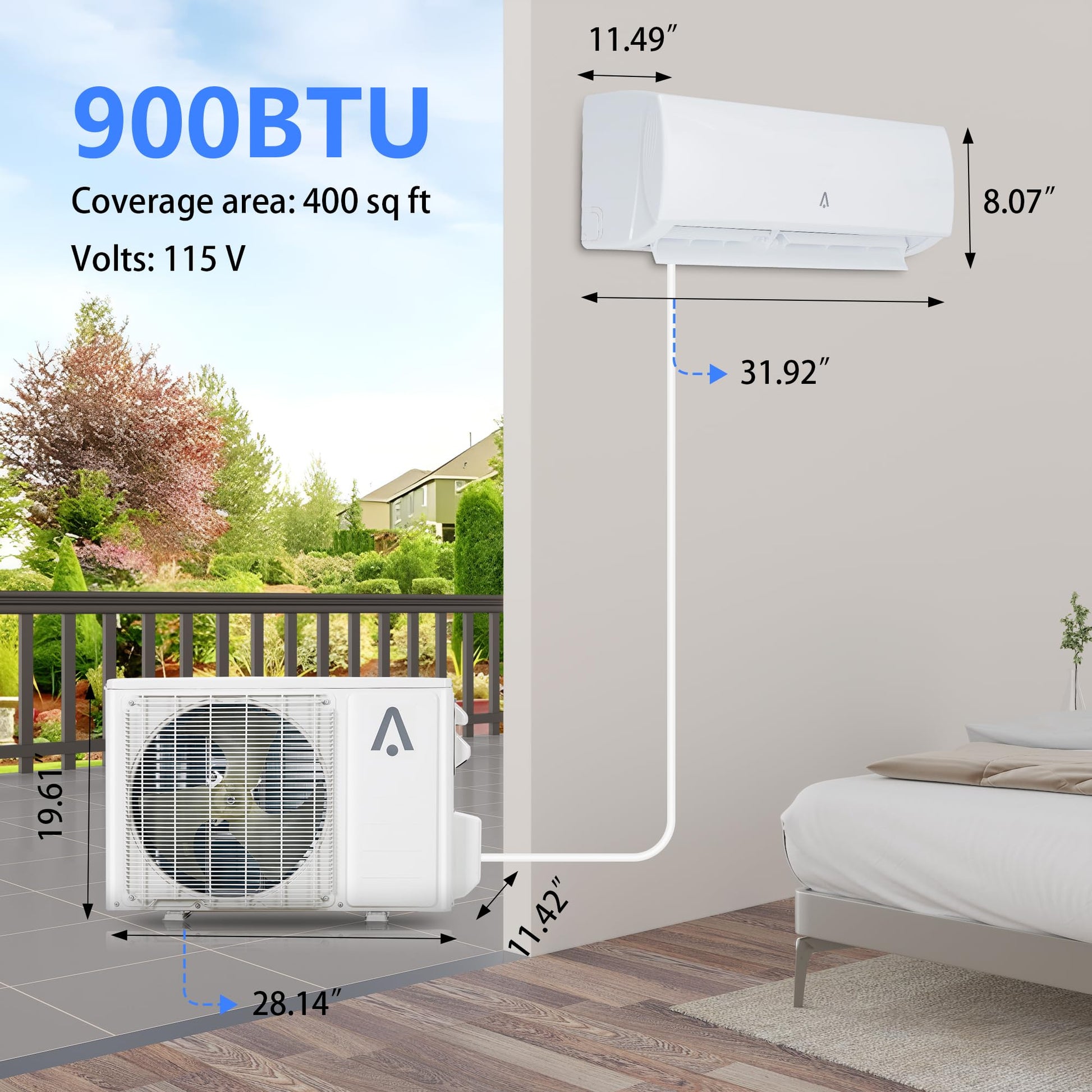 Garvee Mini Split AC/Heating System With WiFi, 9000 BTU 19 SEER 2 208/230V~, Suitable for 450+ Sq. Ft