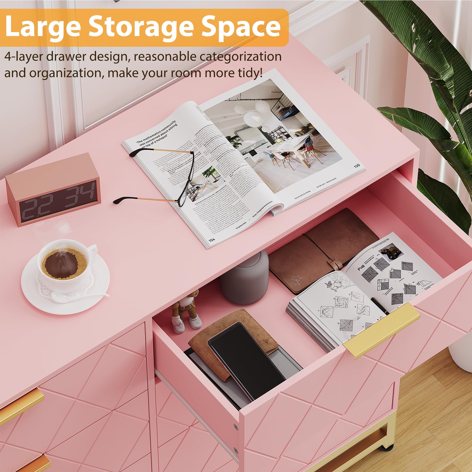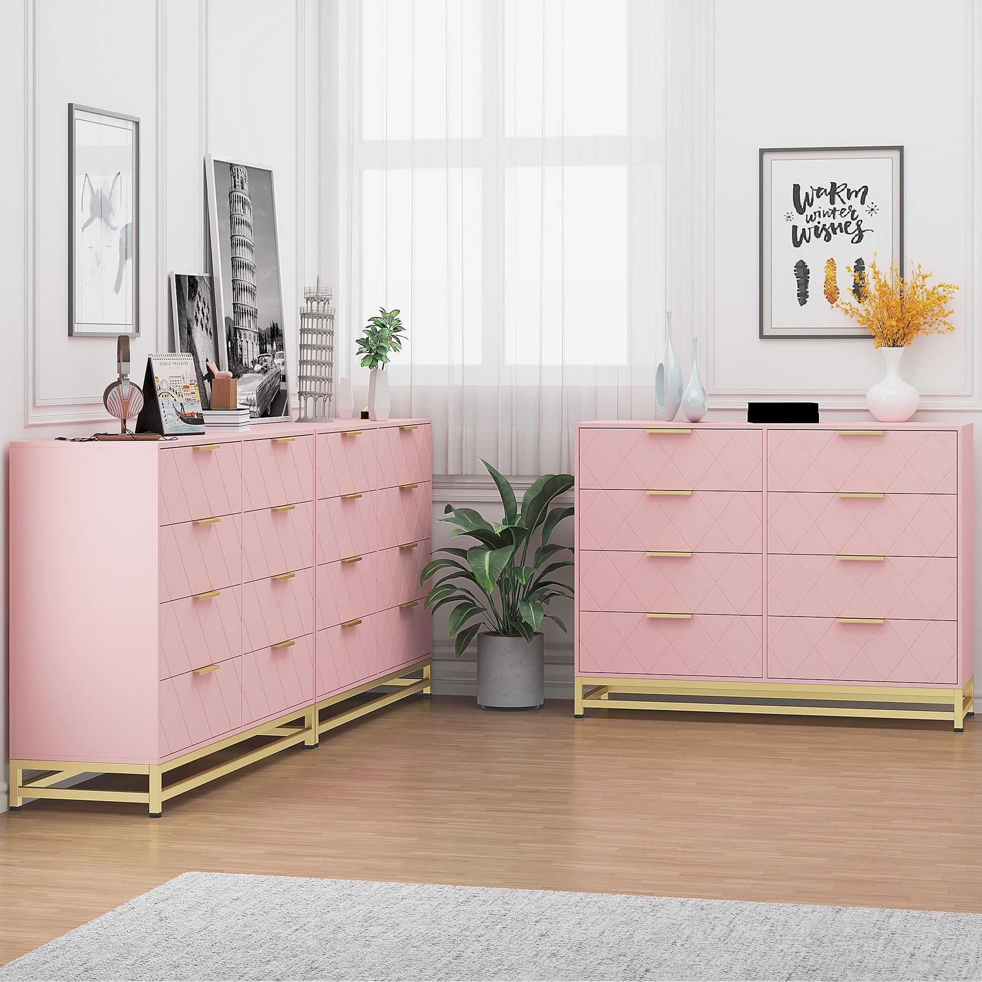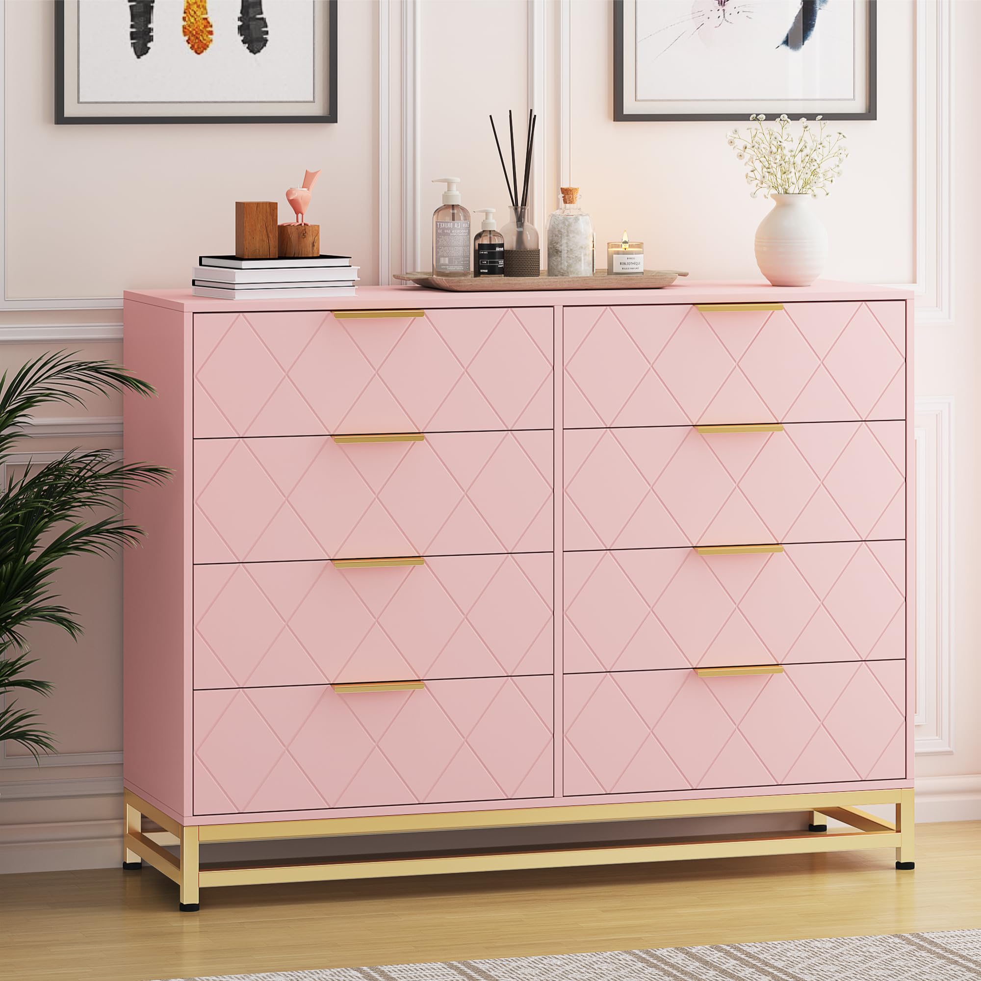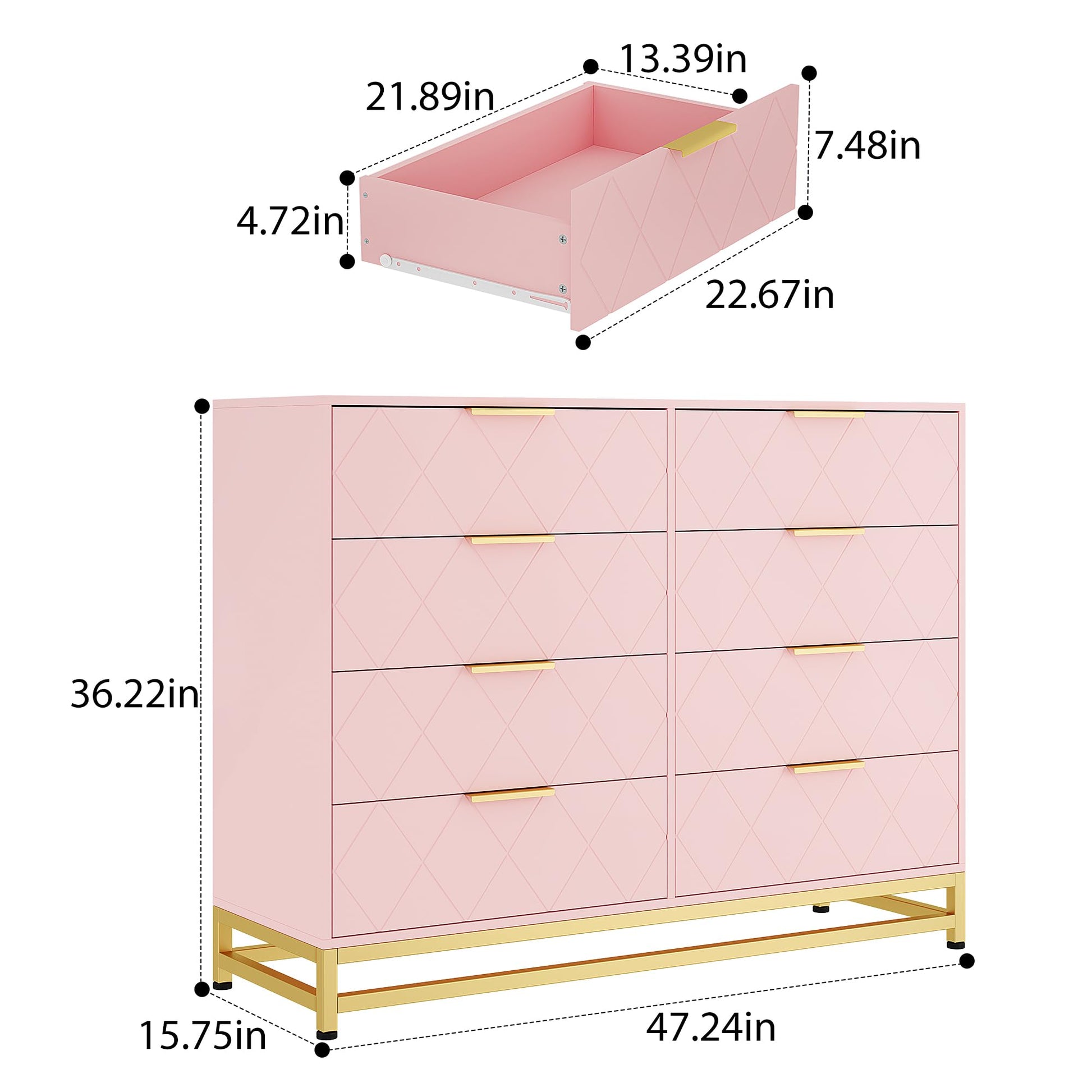 Garvee 8 Drawer Dresser, TV Stand Dressers Chest with Metal Handles, Wood Storage Dresser for Bedroom, Living Room, and Entryway, Pink