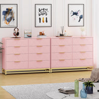 The GARVEE Modern 8 Drawer Dresser combines style with functionality. Its pink finish and gold accents create a chic look, while the spacious drawers offer practical storage solutions for any room in your home.