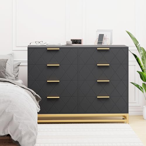Garvee 8 Drawer Dresser, TV Stand Dressers Chest with Metal Handles, Wood Storage Dresser for Bedroom, Living Room, and Entryway, Black
